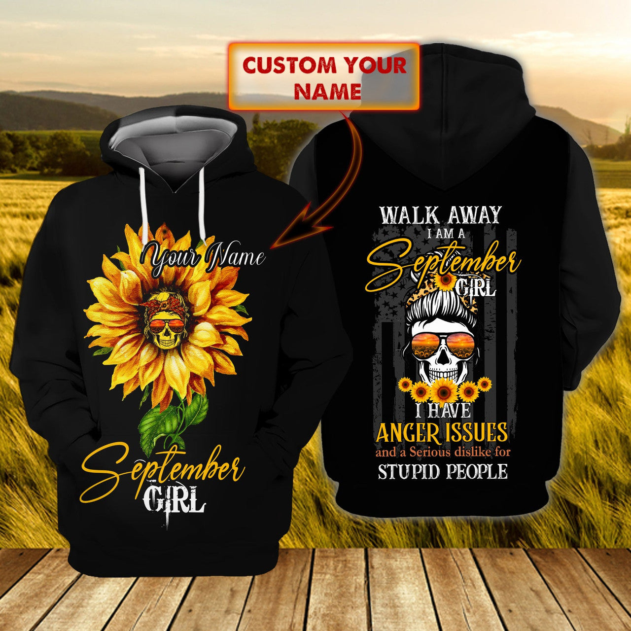 FUNSTUFFPRINT September Girl Skull - Personalized Name 3D Hoodie and Zip Hoodie