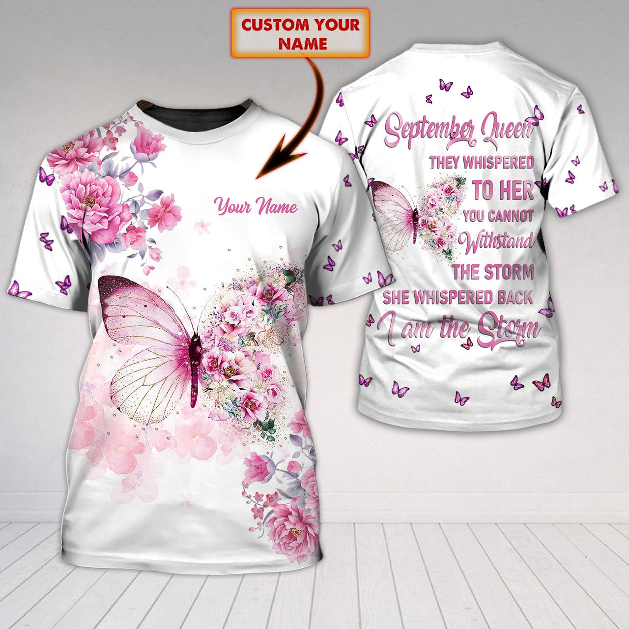 FUNSTUFFPRINT September Queen - Personalized Name 3D T-Shirt
