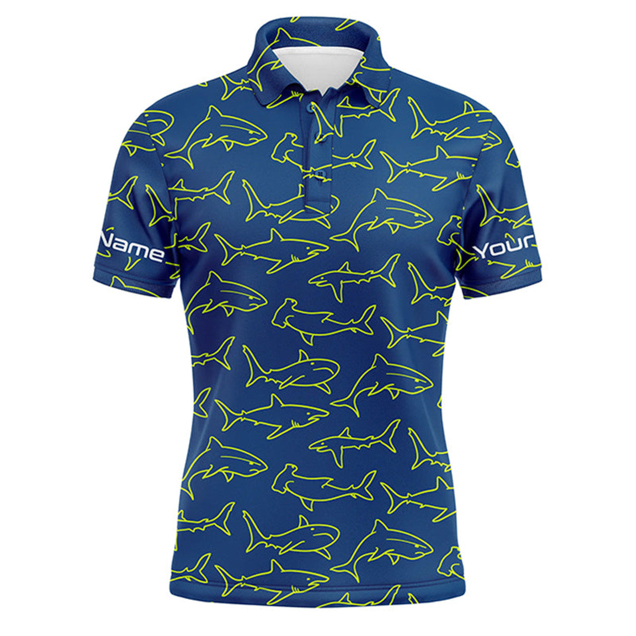 FUNSTUFFPRINT Shark men polo Shirts, Shark Fishing Custom Polo Shirt Size S-5XL