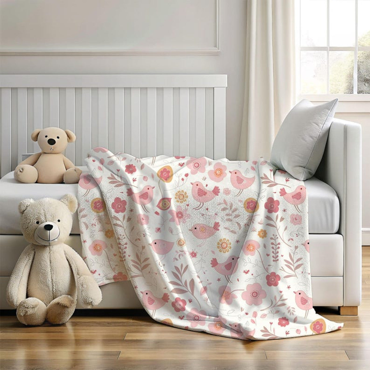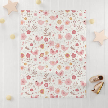 FUNSTUFFPRINT soft baby blanket birds and flower, cute nursery decor for girls, cute christmas gift for new mom, baby shower gift mom, fleece baby blanket