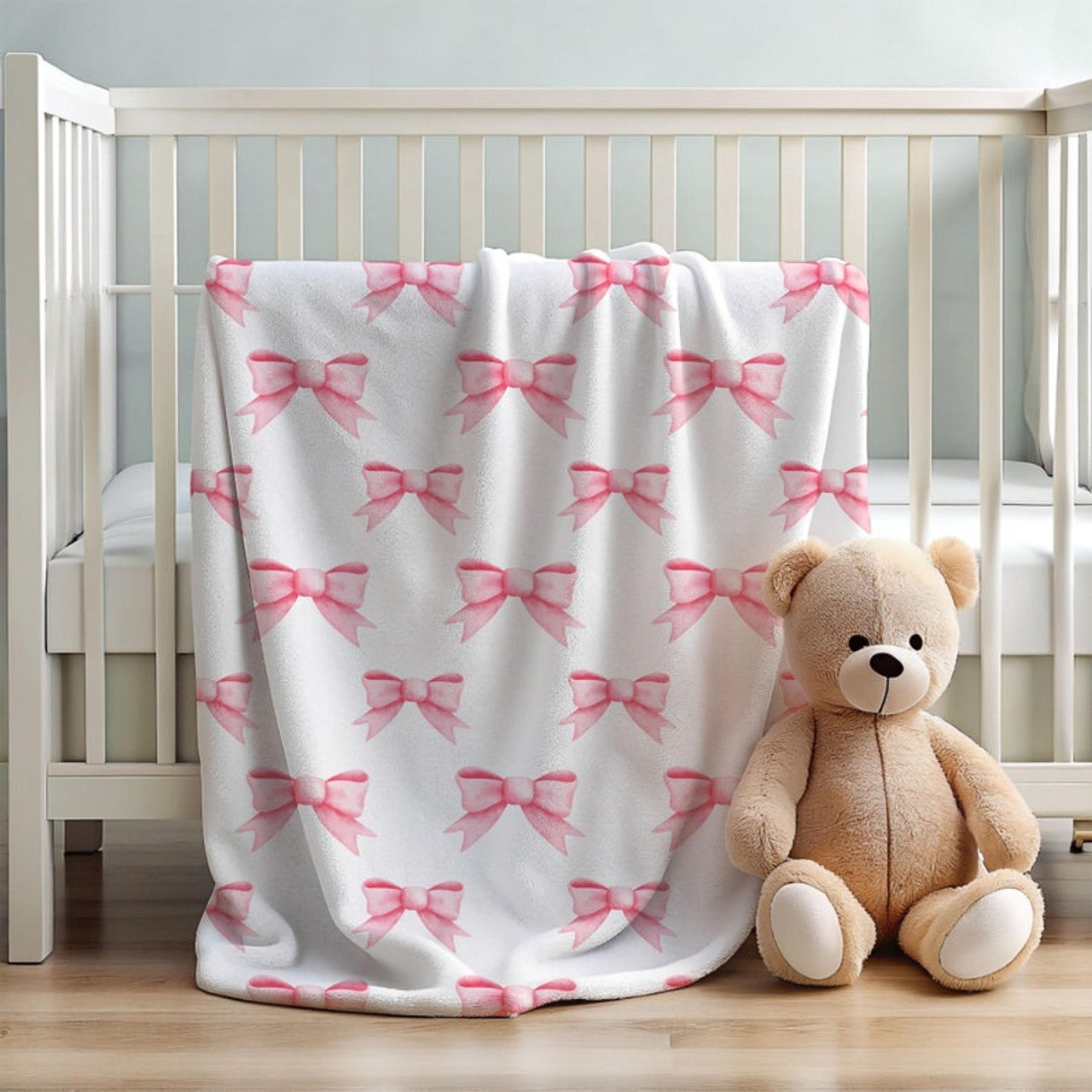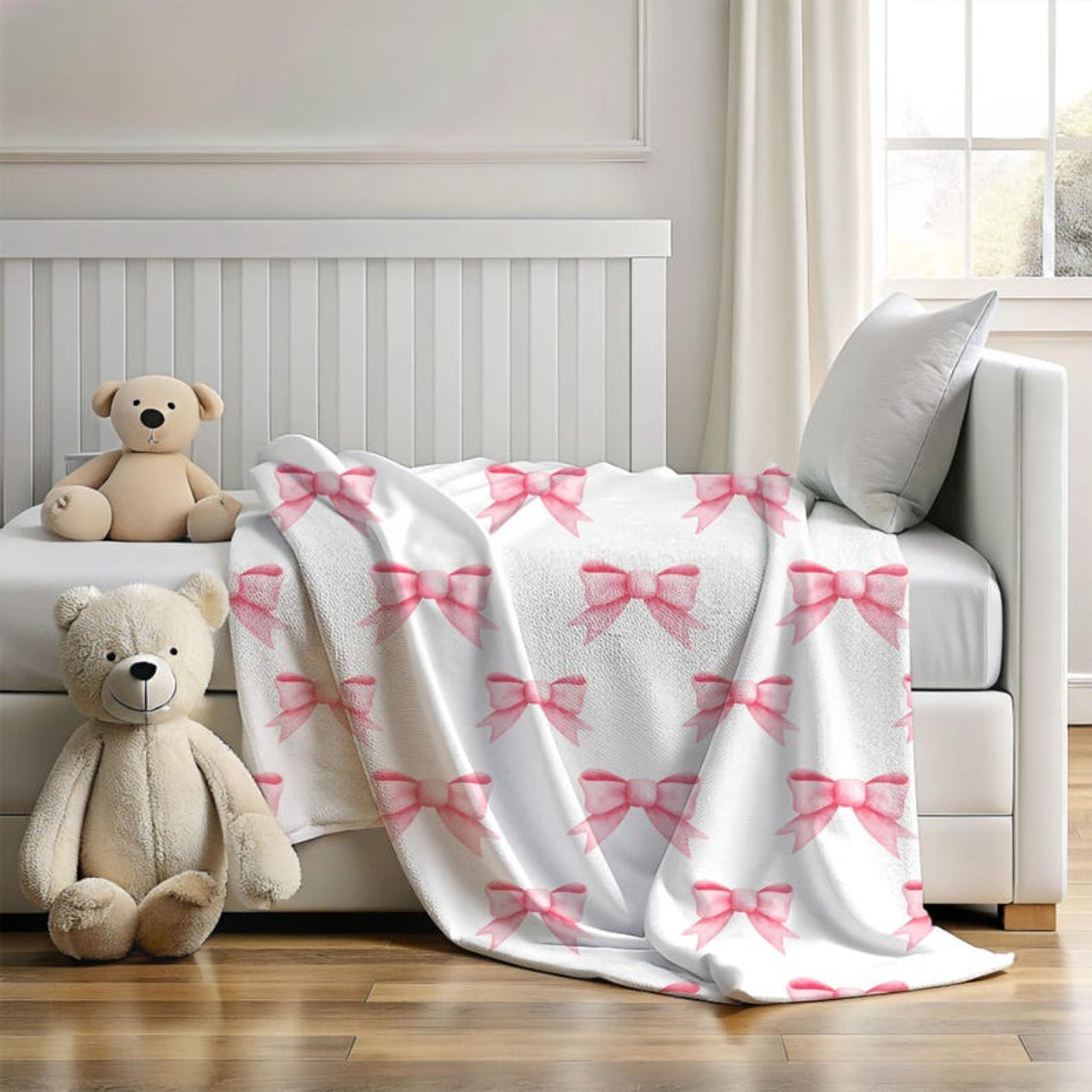 FUNSTUFFPRINT soft baby blanket pink coquette bows, nursery decor for girls, cute christmas gift for baby girls, newborn gift, baby shower gift girl