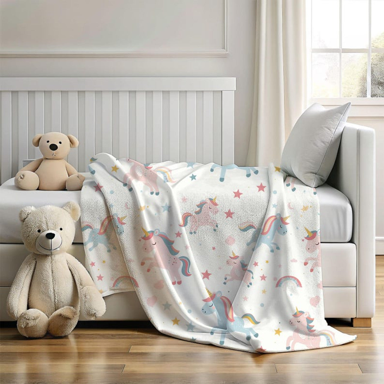 FUNSTUFFPRINT soft fleece baby blanket, pink and blue unicorns and rainbows, nursery decor for baby girl, cute christmas gift for new mom, newborn baby