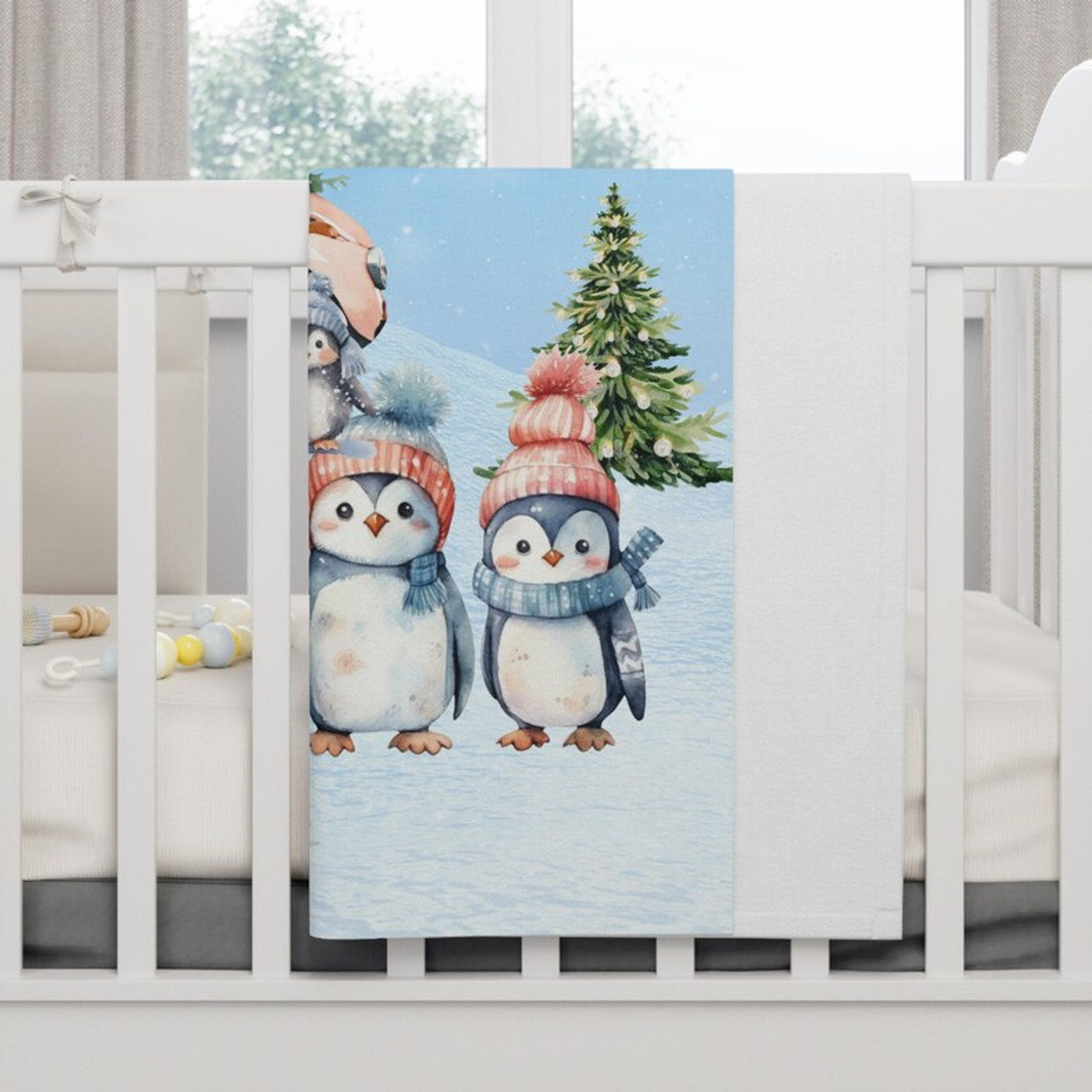 FUNSTUFFPRINT Soft Fleece Child's Blanket, Tis the Season, Item #4121, Penguins, Mouse, and Birds In Snow Blanket, Colorful and Playful for Children