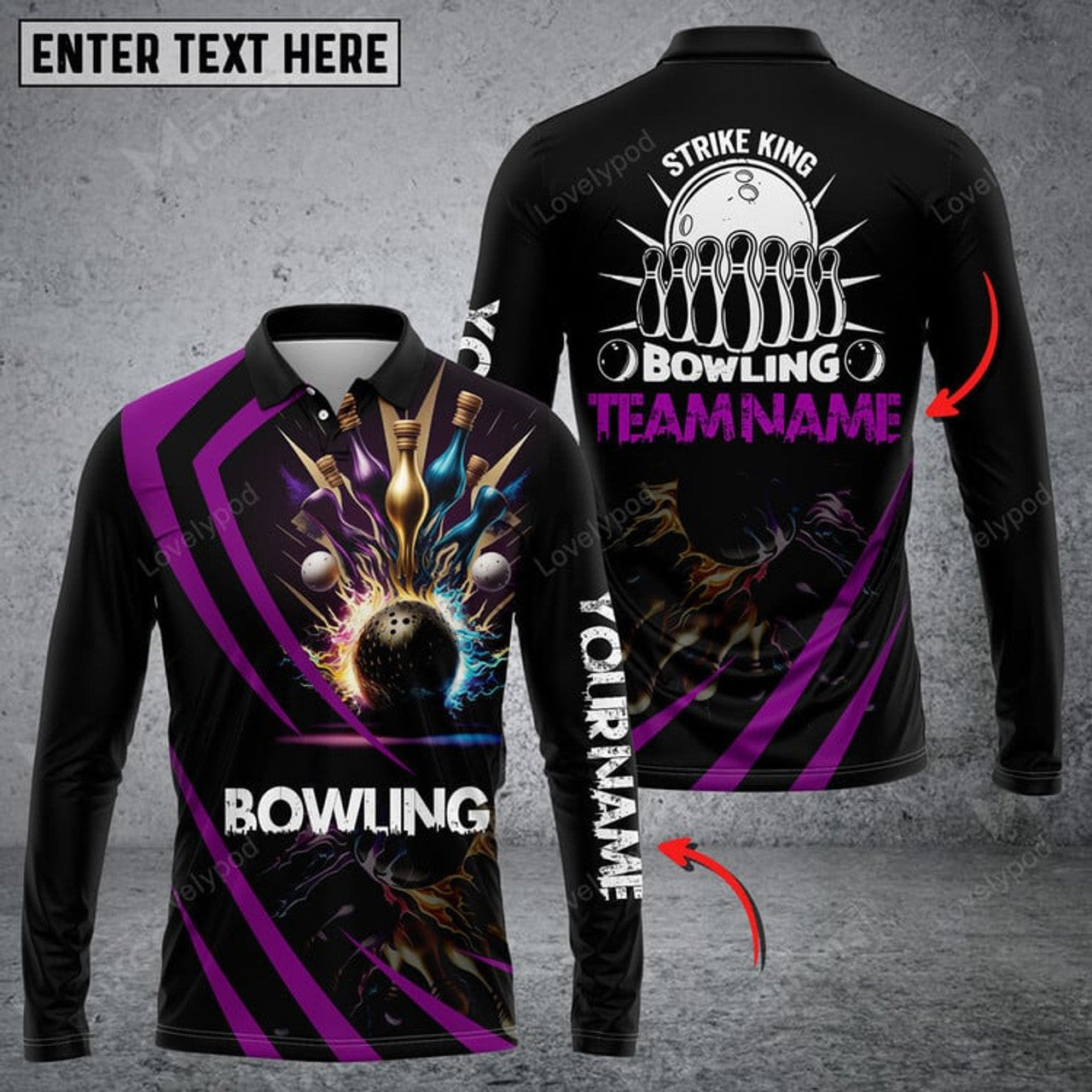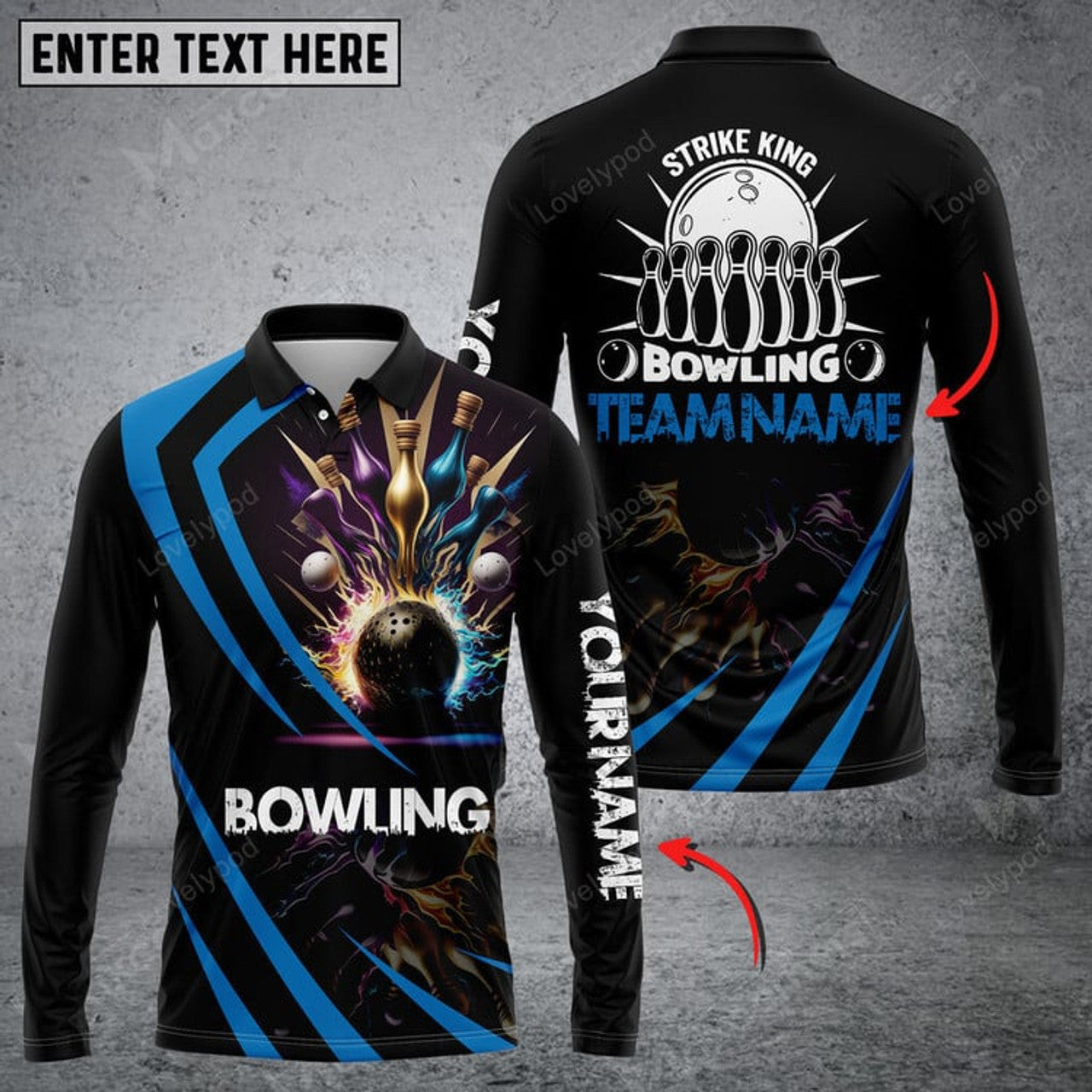 FUNSTUFFPRINT Strike King Bowling Multicolor Option Customized Name Long Sleeve 3D Shirt