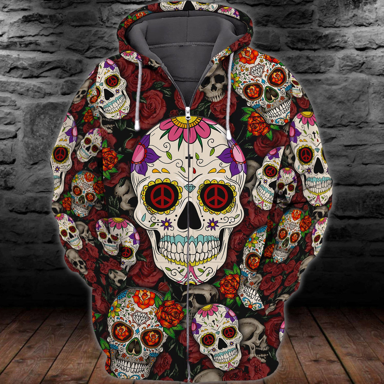 FUNSTUFFPRINT Sugar Skull - Full Print Tad 3D Hoodie and Zip Hoodie