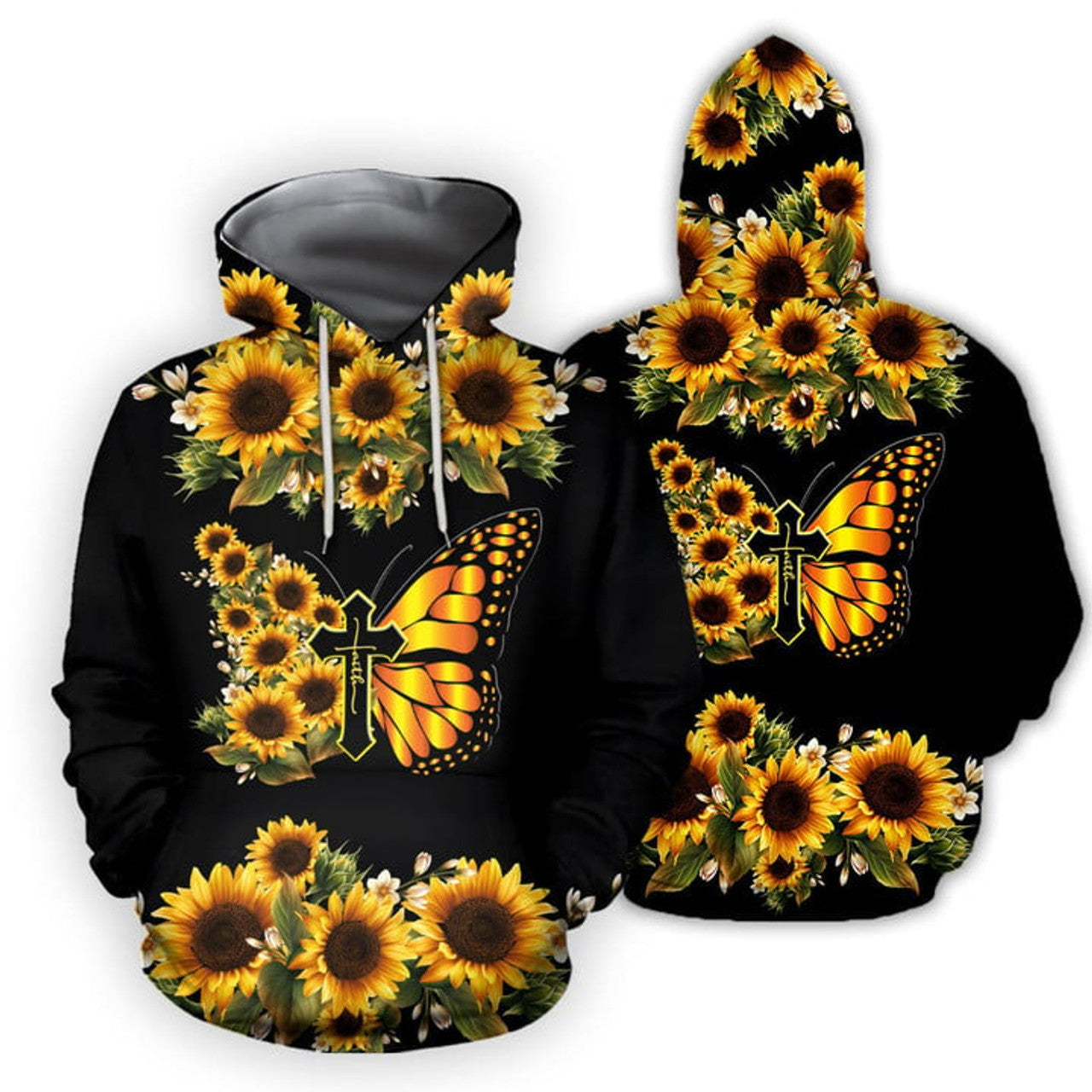 FUNSTUFFPRINT Sunflower Butterfly 3D Hoodie and Zip Hoodie