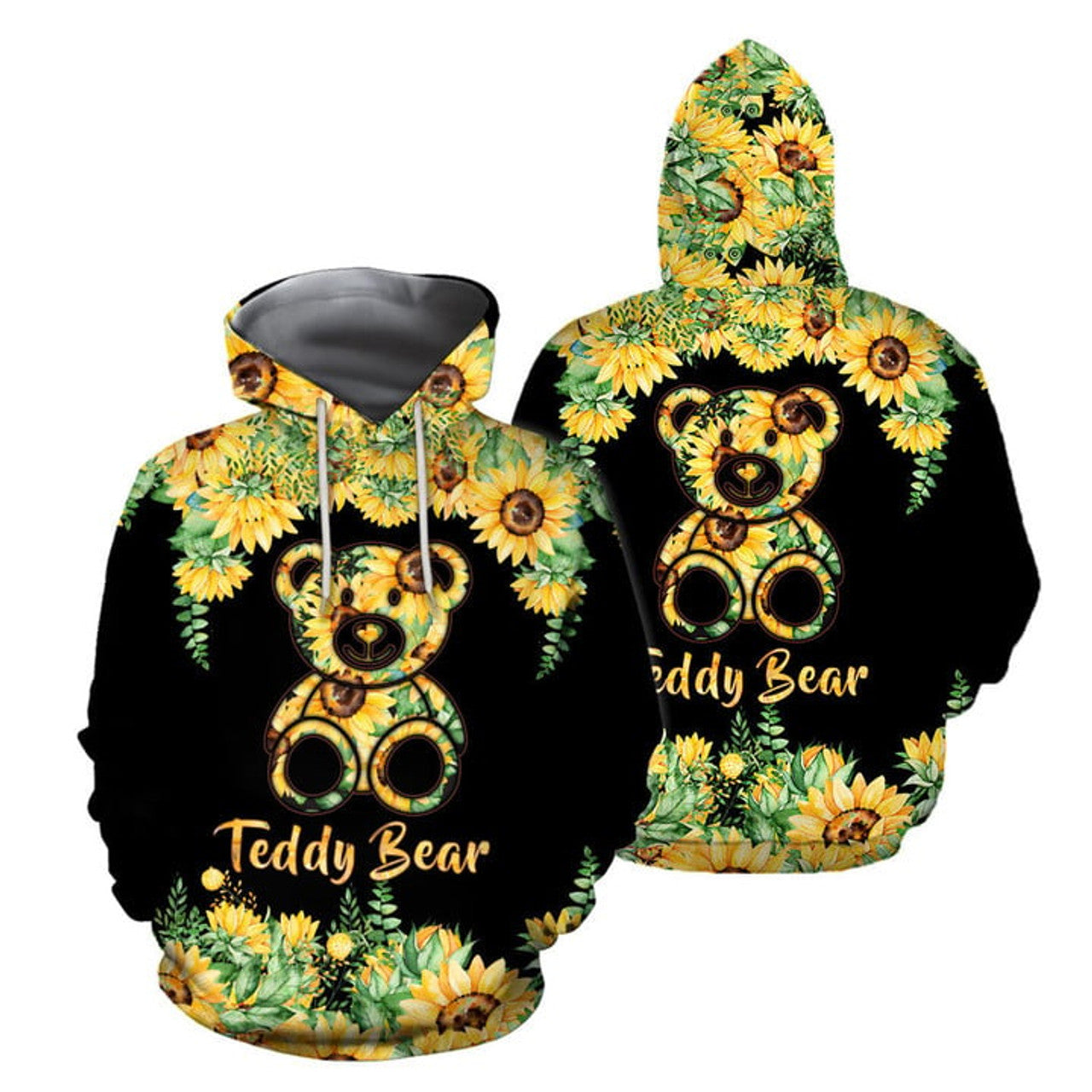 FUNSTUFFPRINT Sunflower Teddy Bear 3D Hoodie and Zip Hoodie