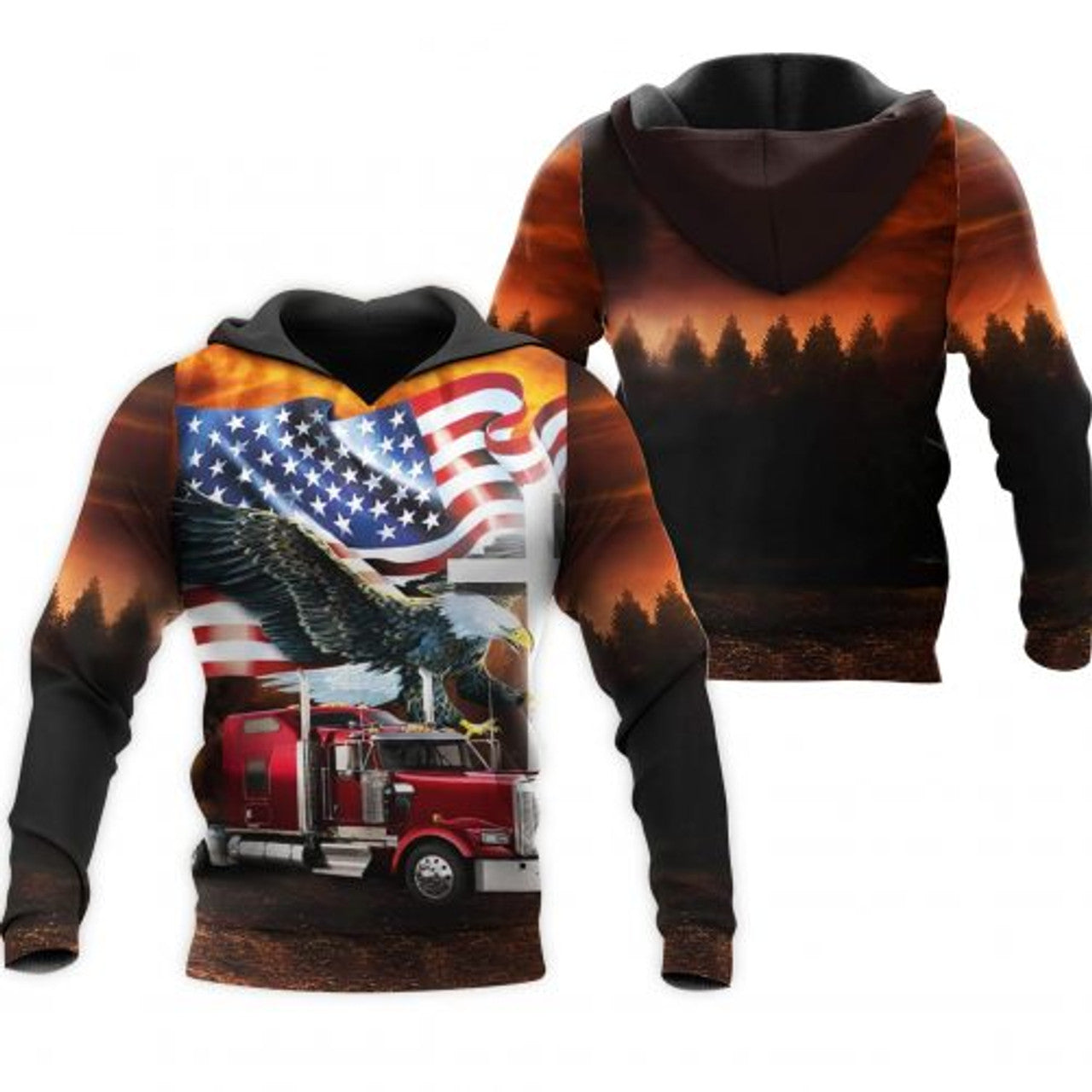 FUNSTUFFPRINT Trucker 3D Hoodie American Flag Eagle 3D Hoodie and Zip Hoodie