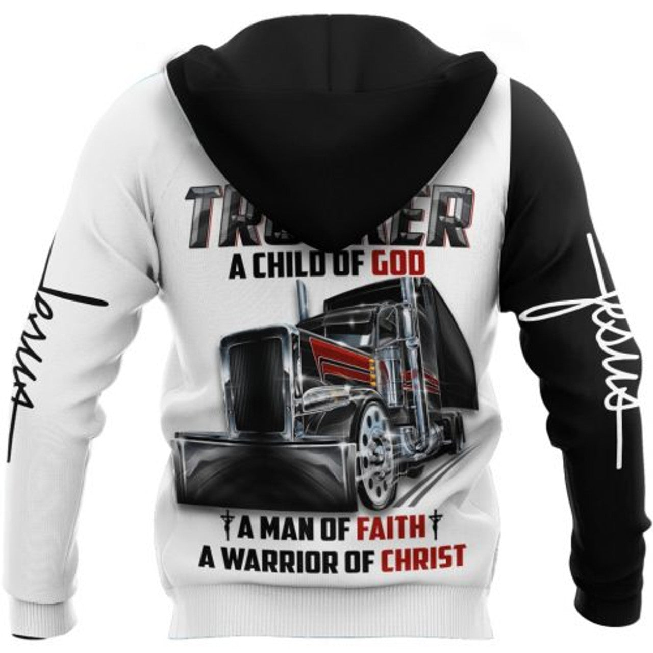 FUNSTUFFPRINT Trucker 3D Hoodie Trucker A Child Of God A Man Of Faith A Warrior Of Christ 3D Hoodie and Zip Hoodie