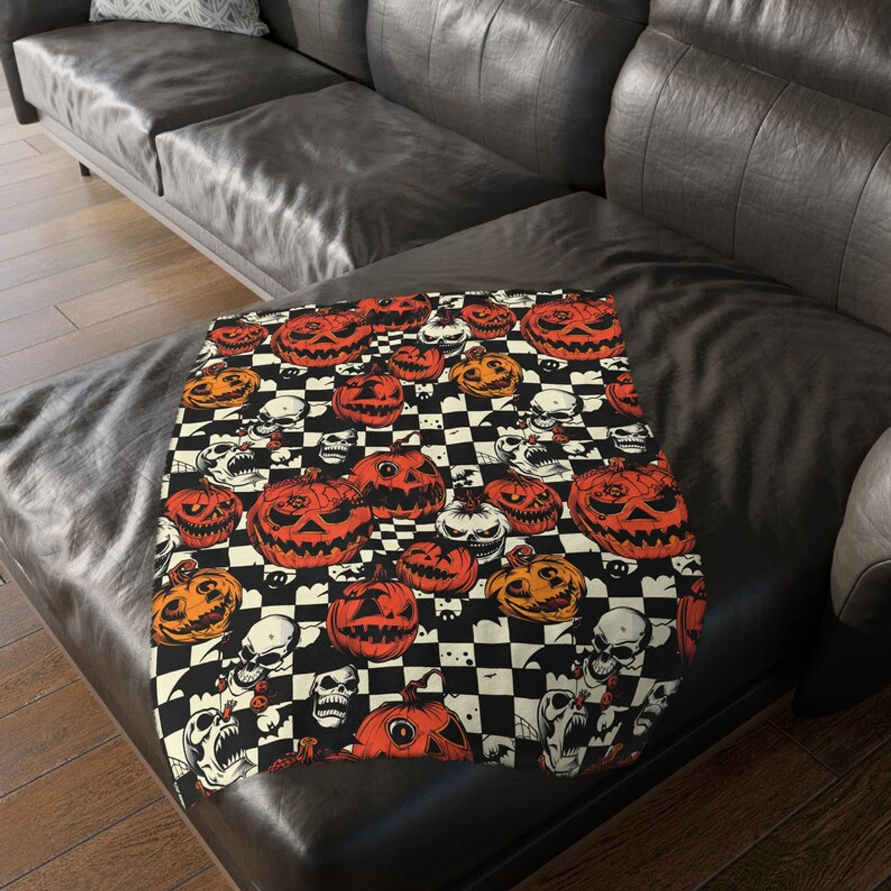 FUNSTUFFPRINT Two-sided Evil Pumpkin Velveteen Microfiber Blanket (Two-sided print) Horror Show Blanket Both Sides Different designs