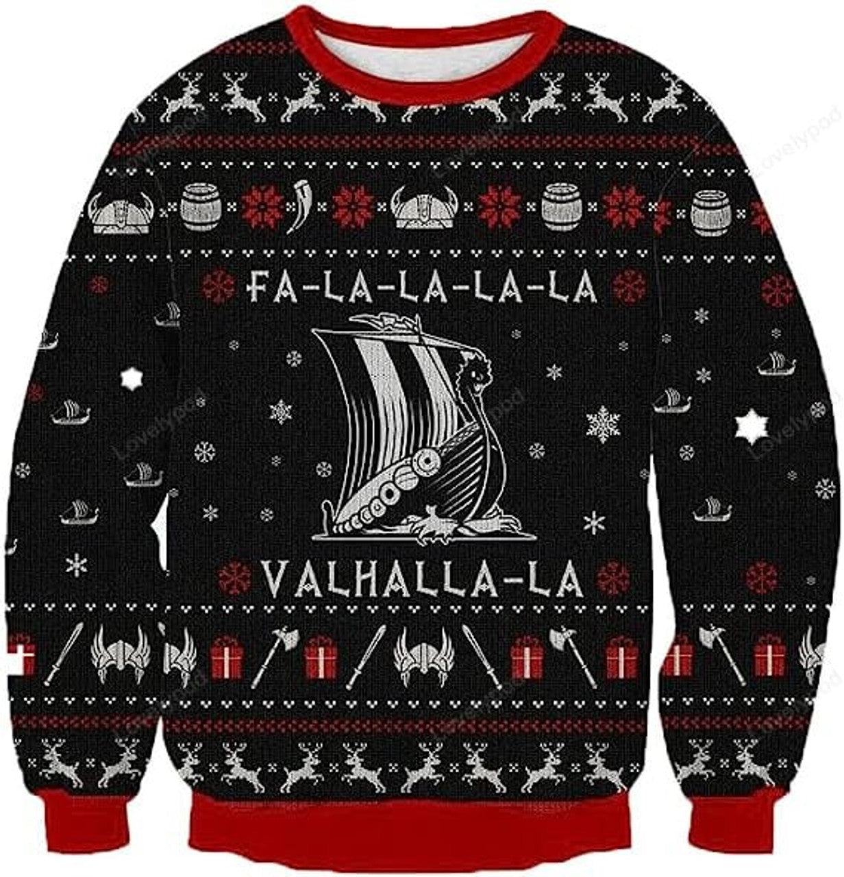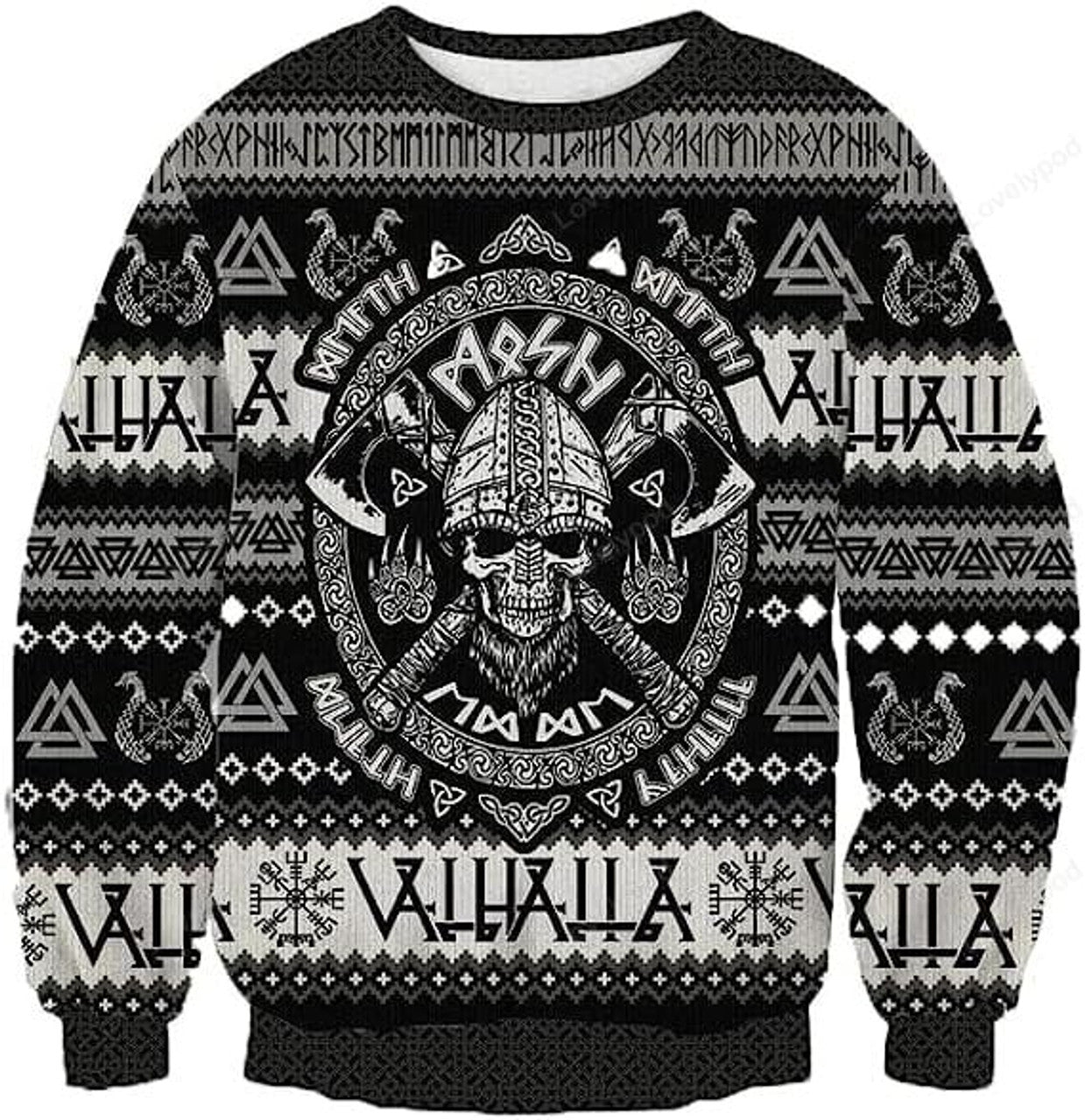 FUNSTUFFPRINT Ugly Christmas Sweaters for Women, Old Vikings Mens Sweater Winter Holiday Crew Neck Shirt, Unisex Ugly Christmas Sweater Ugly Sweater