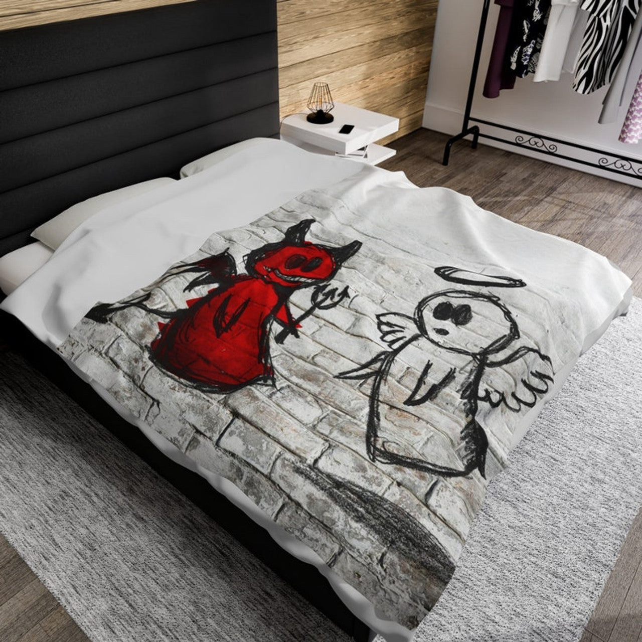 FUNSTUFFPRINT Velveteen Blanket, Good Vs Evil Blanket, Religious Blanket, Soft Velveteen Plush Throw, Unique Street Art Decor | Shop Now!