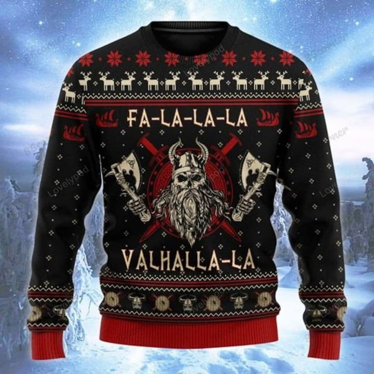 FUNSTUFFPRINT Viking FA La La Teal Ugly Christmas sweater Ugly Sweater