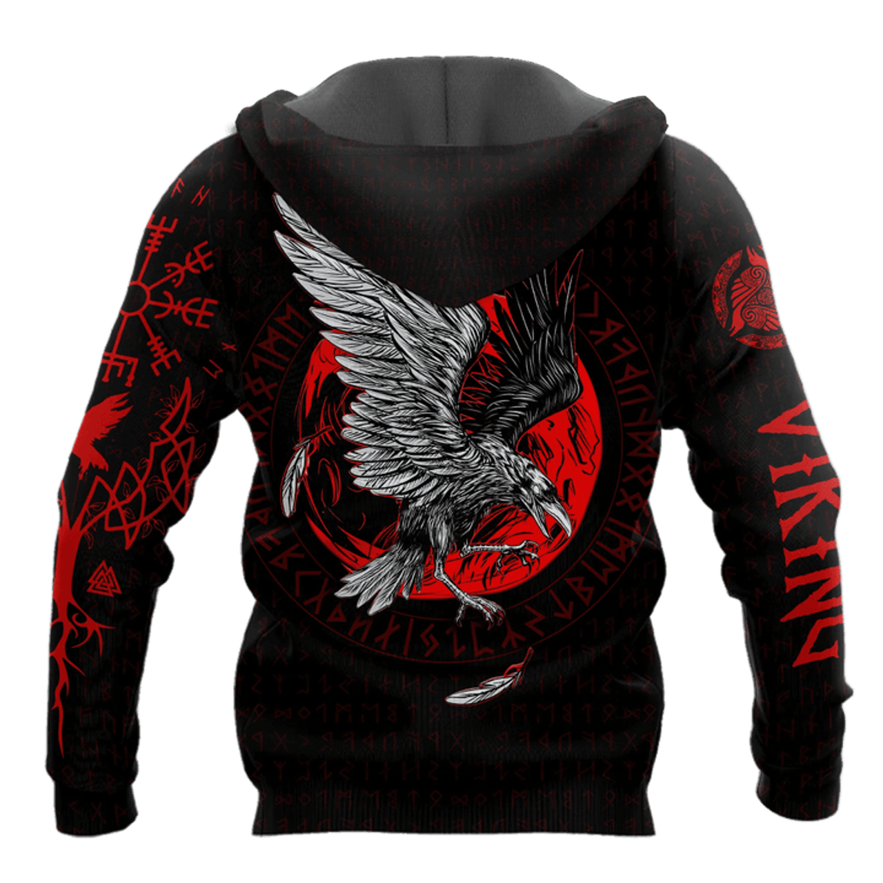 FUNSTUFFPRINT Viking Raven Red Moon Circle 3D Hoodie and Zip Hoodie
