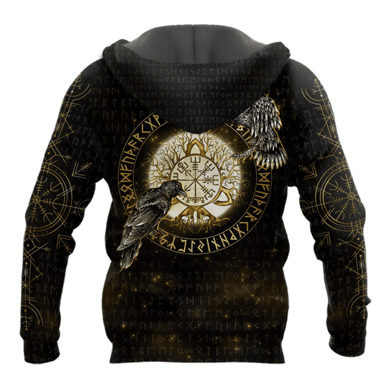 FUNSTUFFPRINT Viking Raven Tree Of Life Moon Gold 3D Hoodie and Zip Hoodie