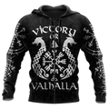 FUNSTUFFPRINT Viking Victory or Valhalla Tattoo Black 3D Hoodie and Zip Hoodie