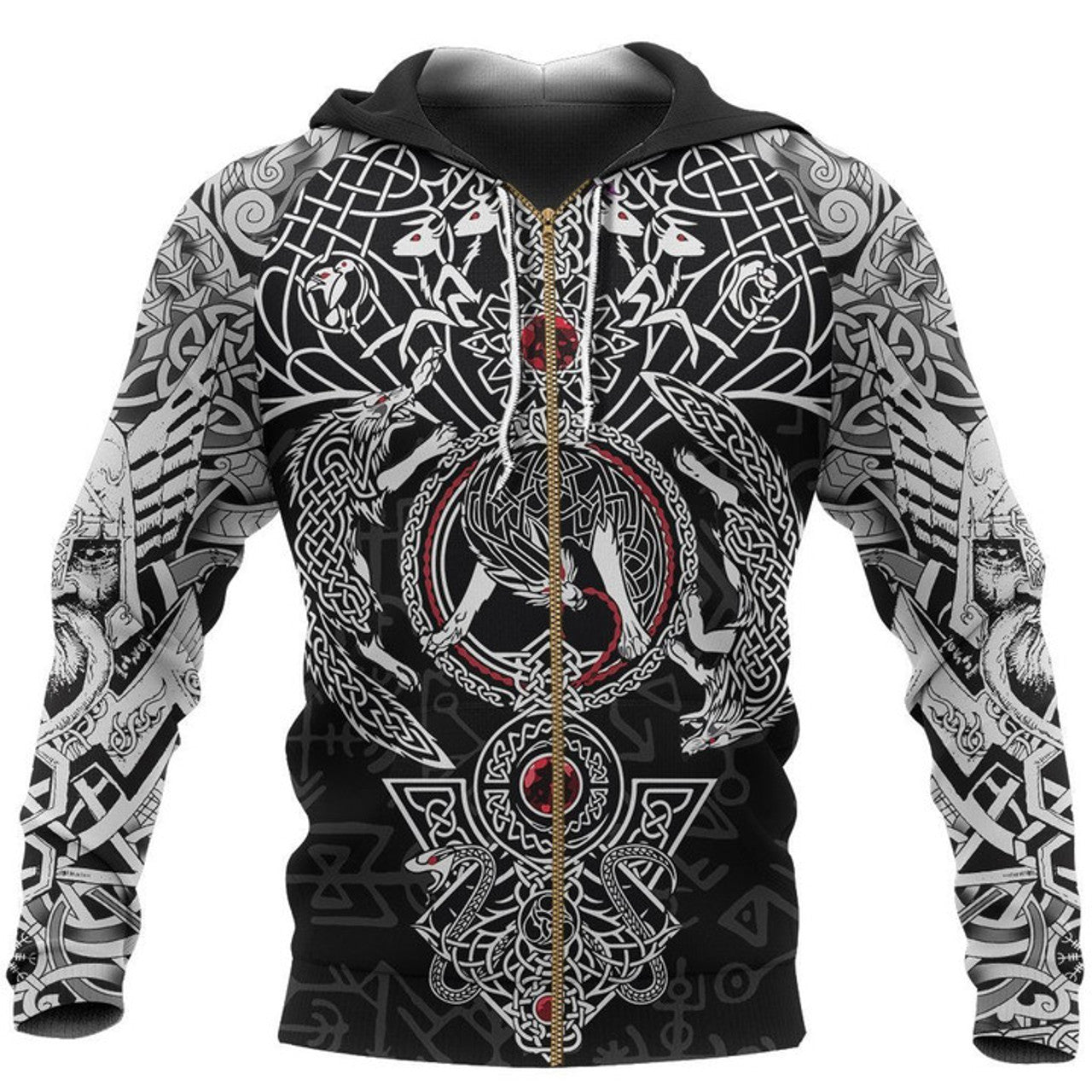 FUNSTUFFPRINT -Vikings Fenrir Skoll And Hati Valknut 3D Hoodie and Zip Hoodie