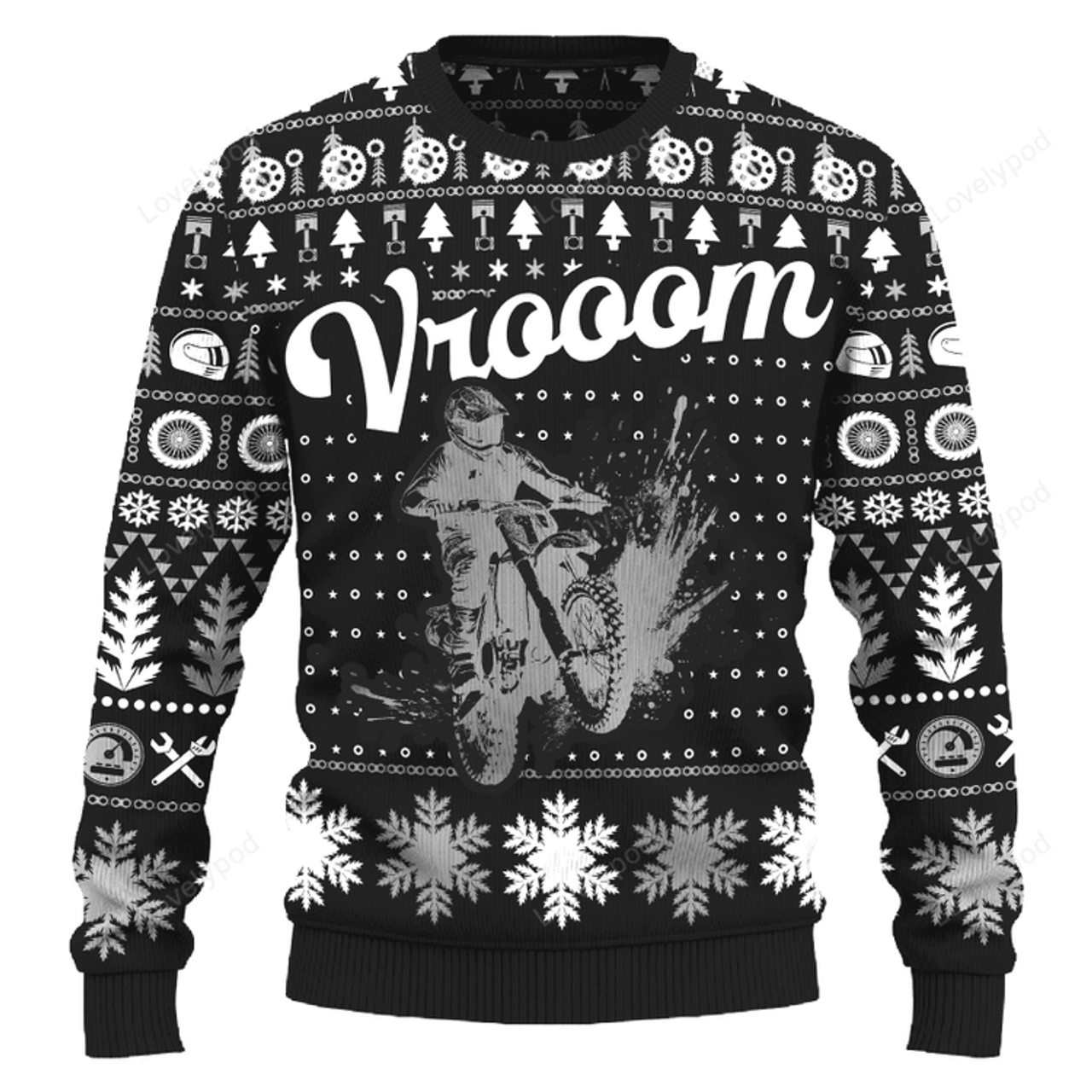 FUNSTUFFPRINT Vrooom KX100 Ugly Christmas Sweater Multicolor , Custom Motocross ugly sweater, Motocross shirt for men and women Ugly Sweater