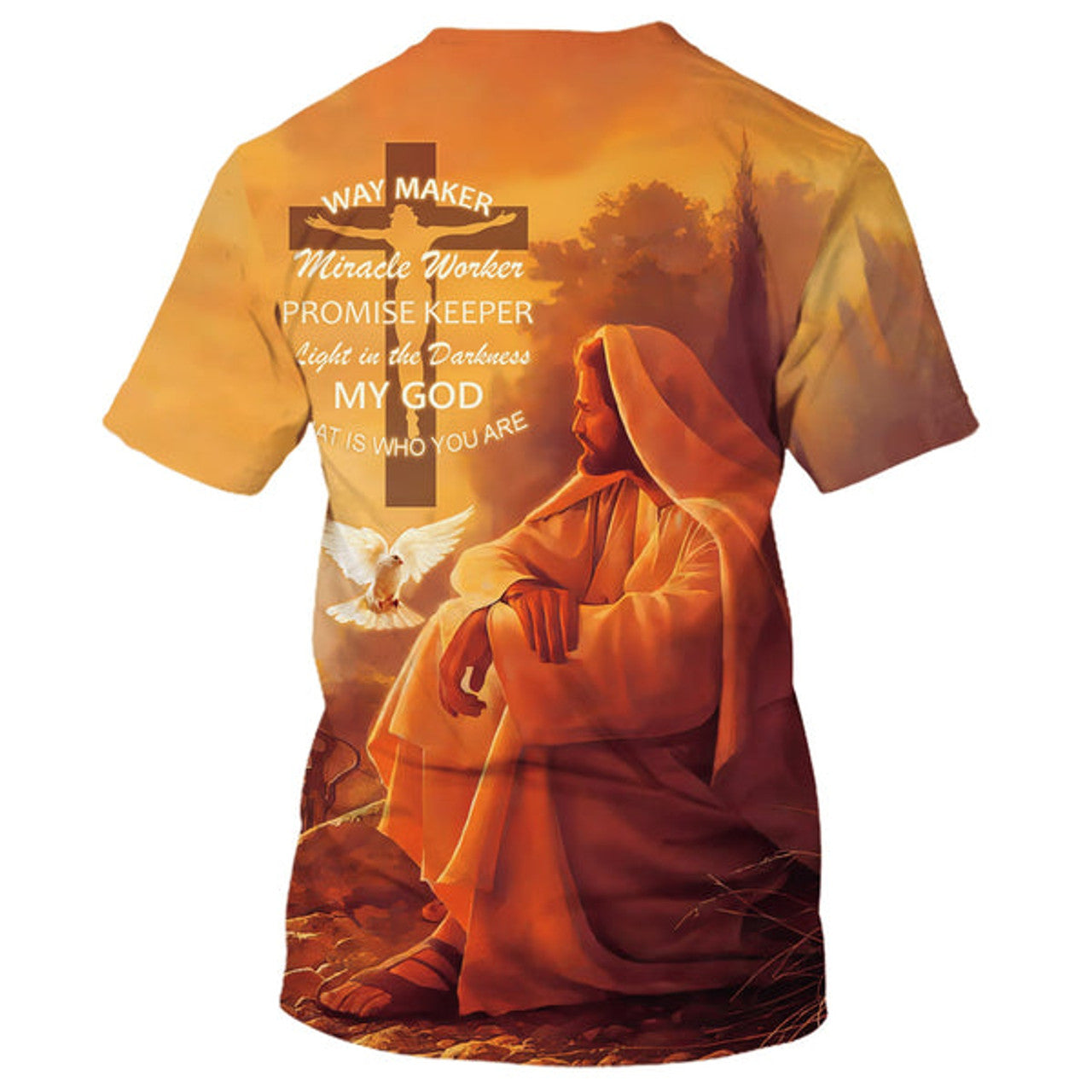 FUNSTUFFPRINT Way Maker Miracle Worker Promise Keeper Shirts - Jesus Sitting 3D All Over Printed Shirt for Men and Women 3D T-shirt