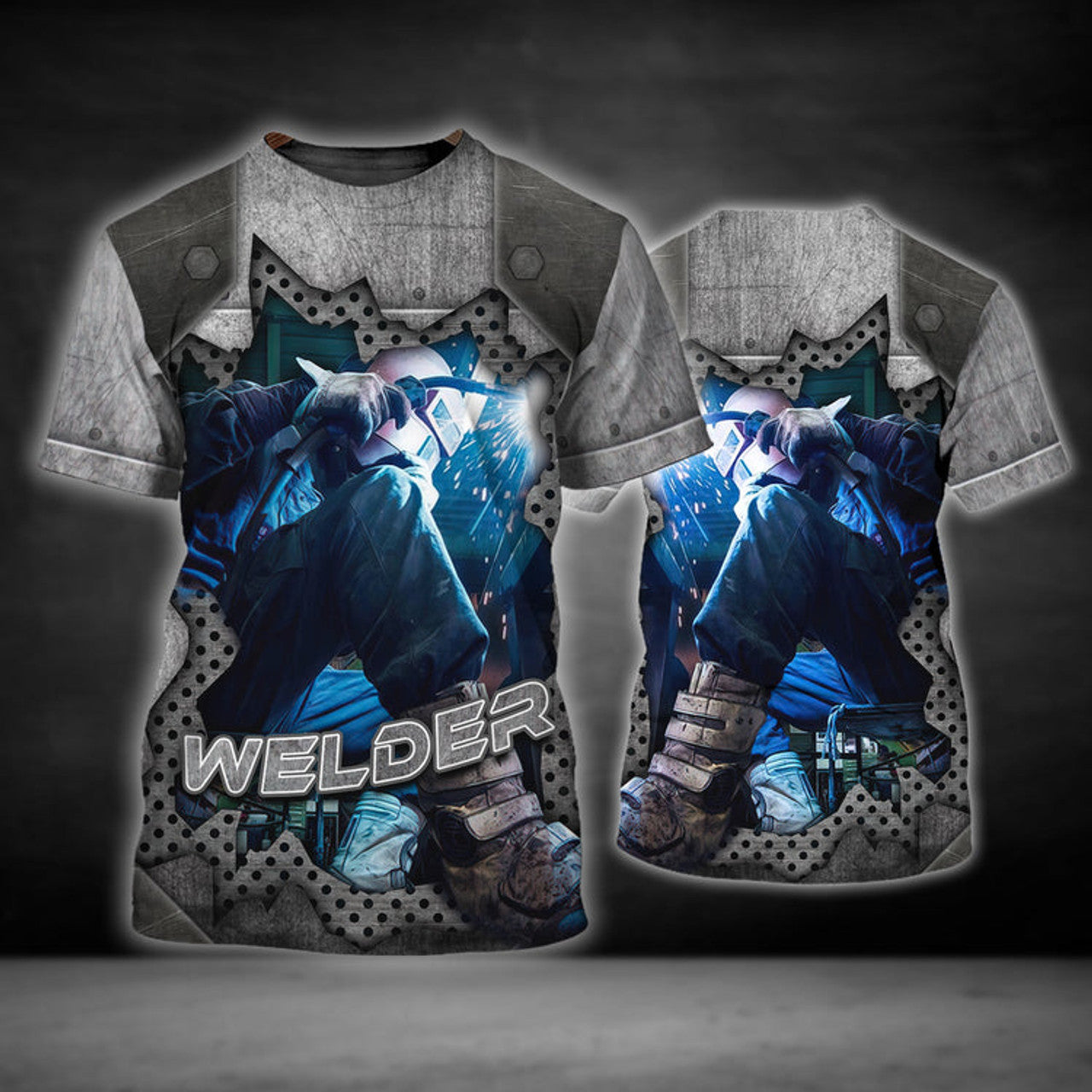 FUNSTUFFPRINT Welder Blue Graphic Design 3D Printed Shirts, Welder Work Shirts, Birthday Gift for Welder Dad 3D T-shirt