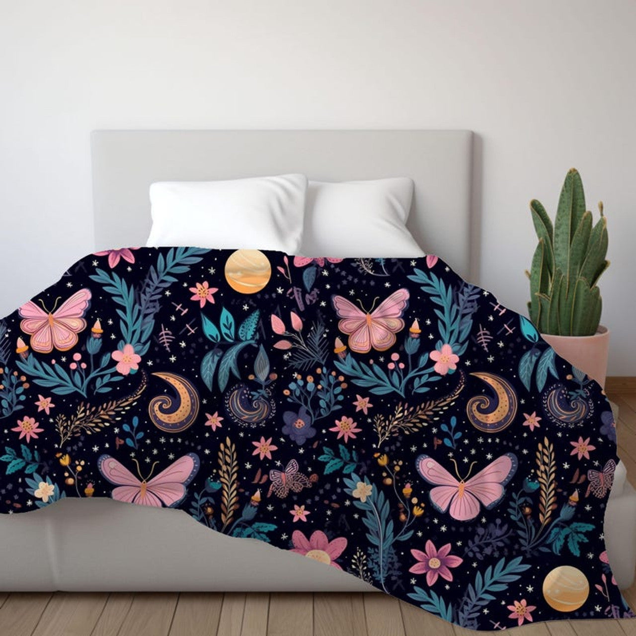 FUNSTUFFPRINT Whimsigoth Aesthetic Throw Blanket For Girls, Fairycore Room Decor For Bedroom, Witchy Christmas Gifts For Best Friend, Pink Butterfly