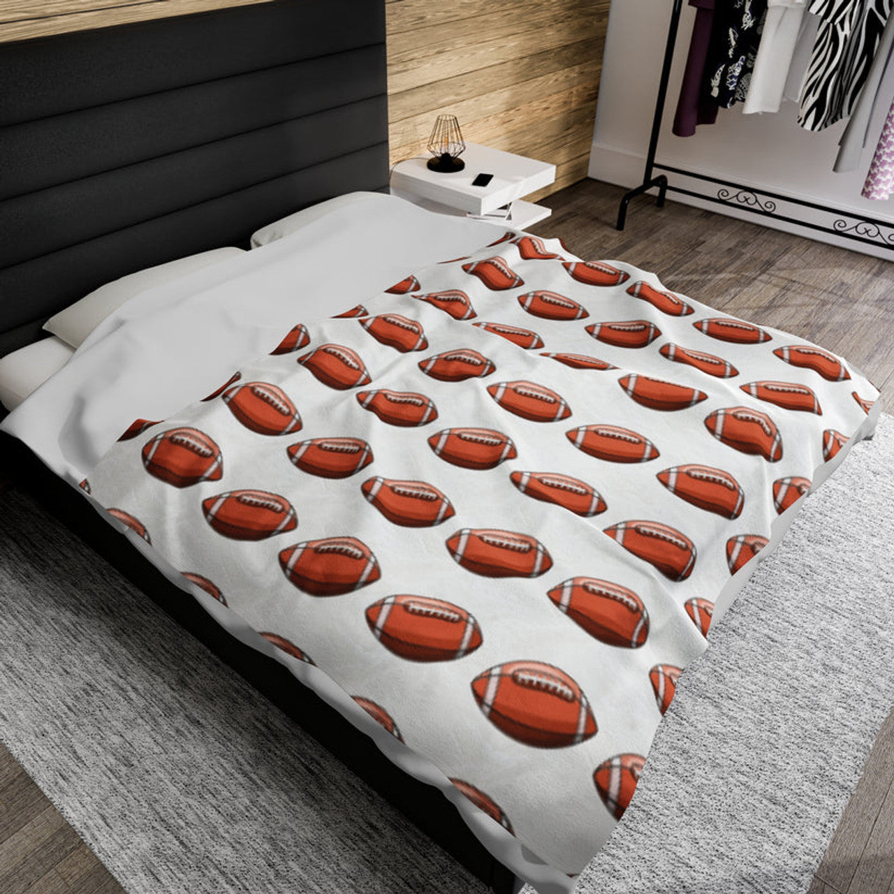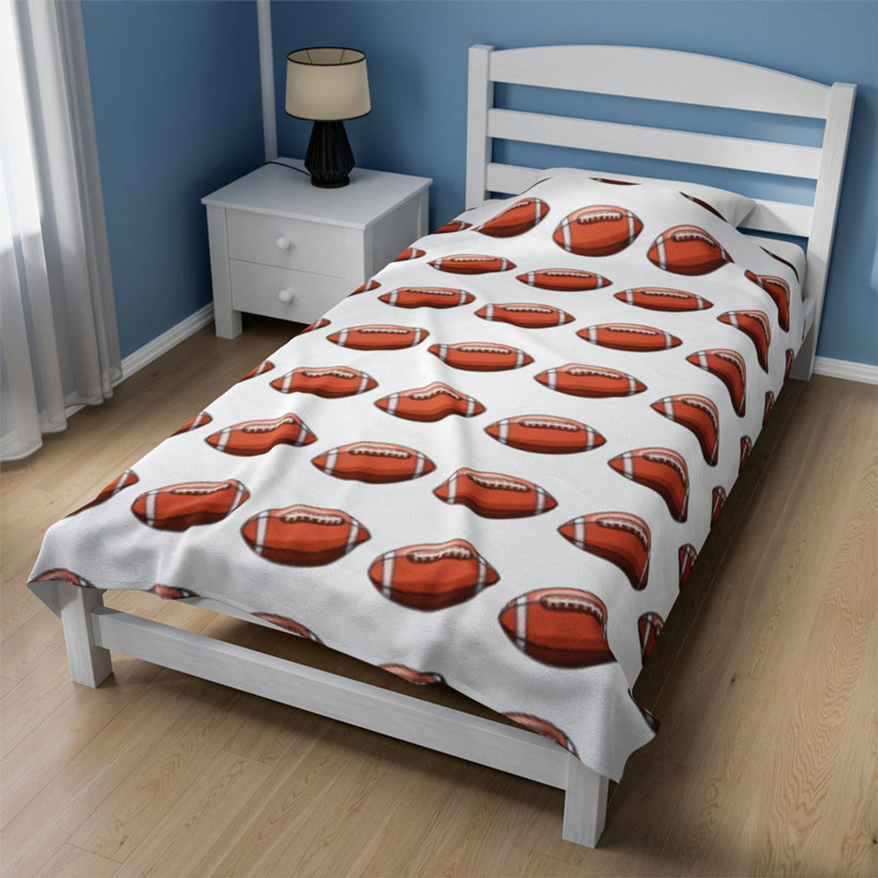 FUNSTUFFPRINT White Footballs Velveteen Plush Blanket