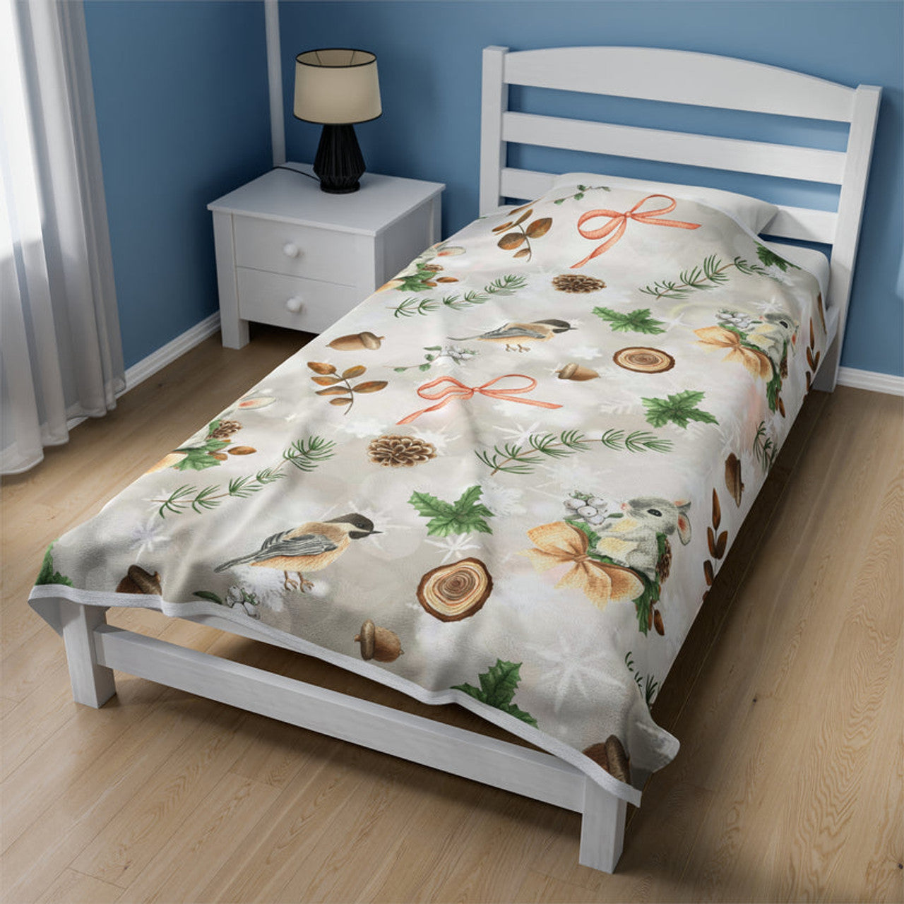 FUNSTUFFPRINT Winter Bunny Velveteen Plush Blanket