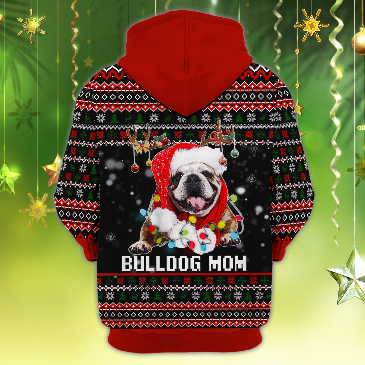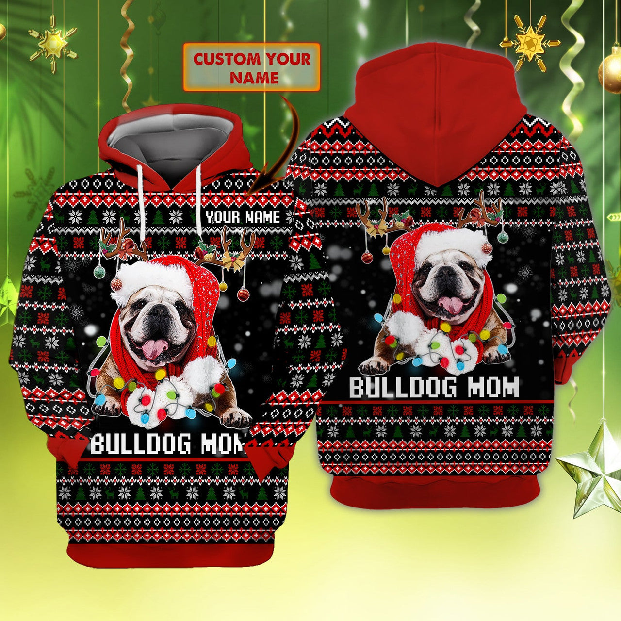 FUNSTUFFPRINT Xmas English Bulldog - Personalized Name 3D Hoodie and Zip Hoodie