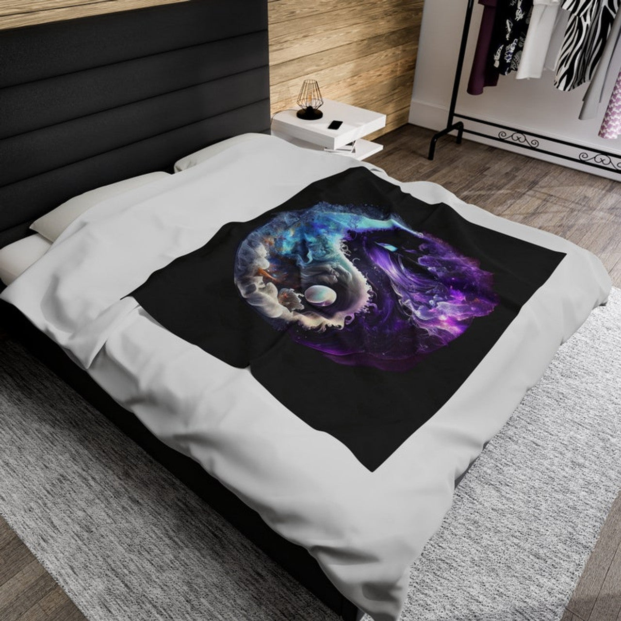FUNSTUFFPRINT Yin Yang Blanket, Soft Velveteen Plush Blanket, Celestial Yin-Yang Home Decor, Soft Comfortable Throw