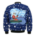 FUNSTUFFPRINTI Merry Christmas Santa Claus Fishing On Lake Retro Christmas Holiday Gifts Unisex 3D Bomber Jacket