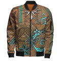 FUNSTUFFPRINT American Samoa Bomber Jacket Polynesian Pattern Motif And Teal Boar Tusk 3D Bomber Jacket