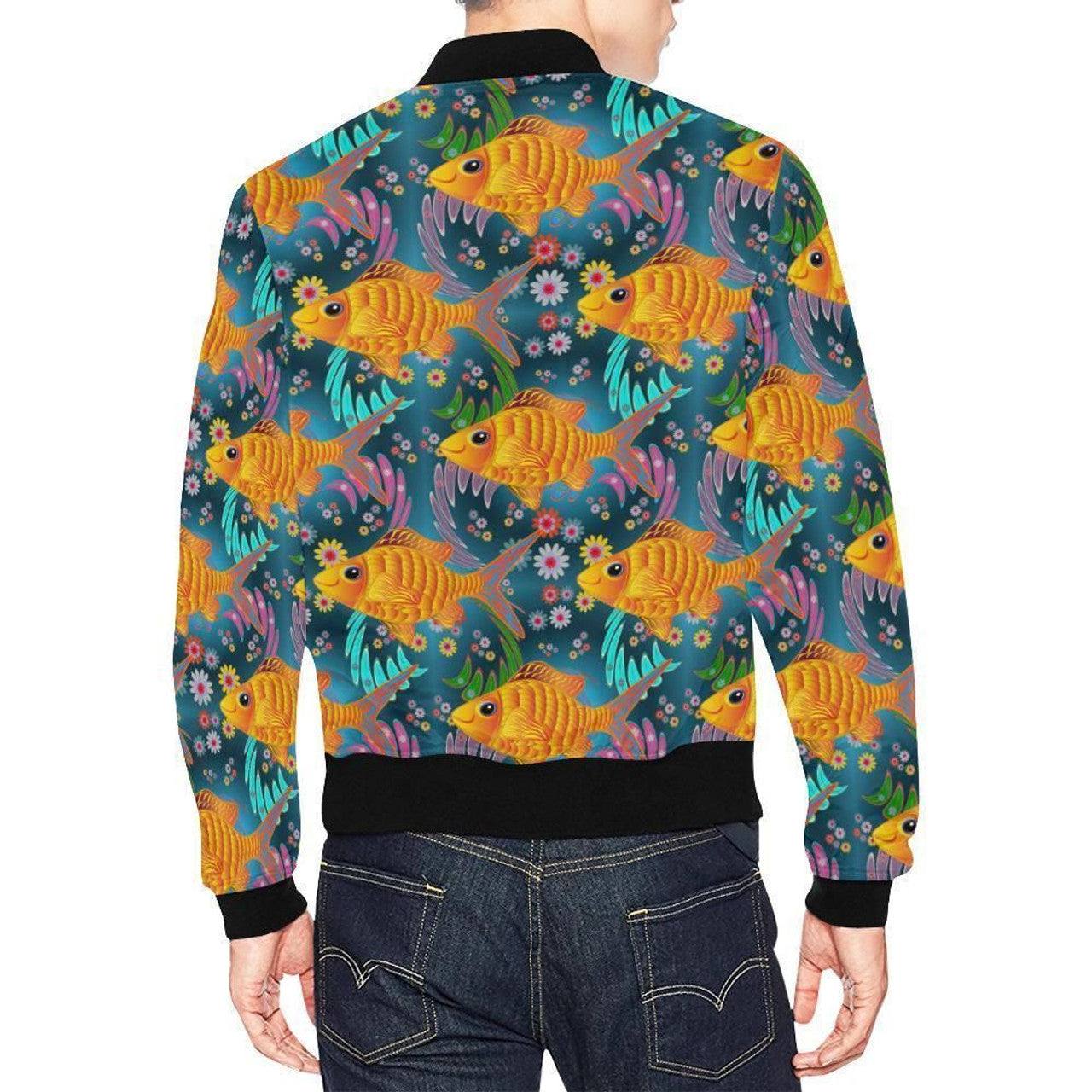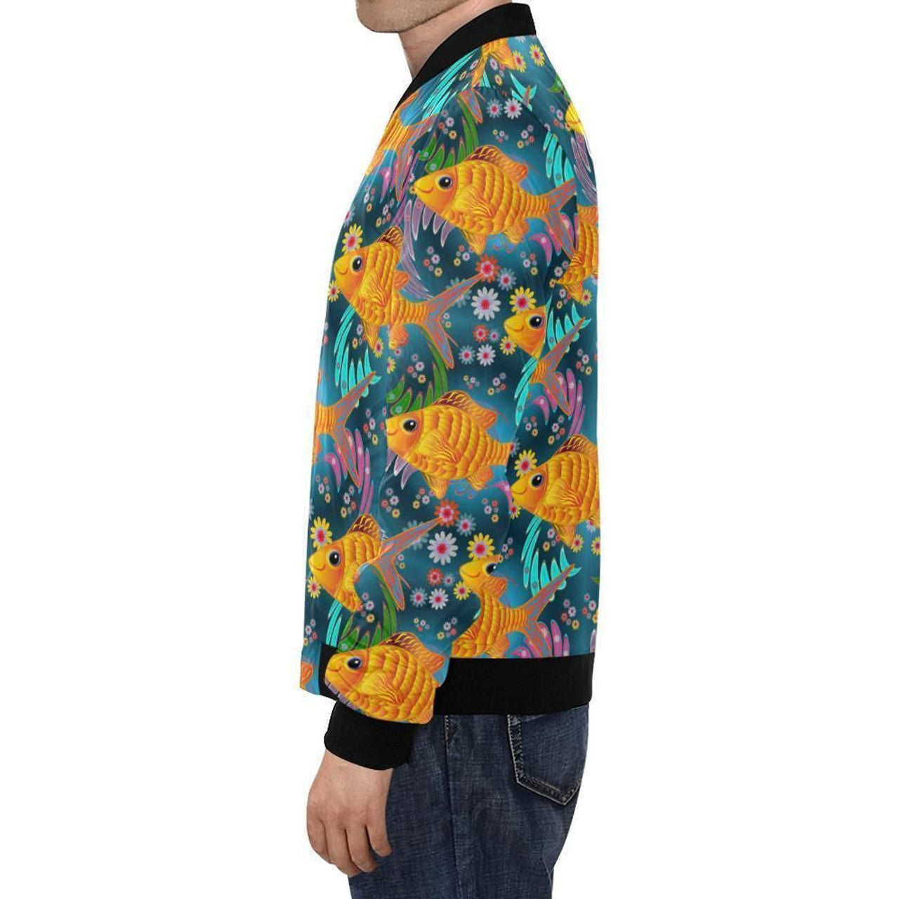FUNSTUFFPRINT Goldfish Flower Pattern Print Mens 3D Bomber Jacket
