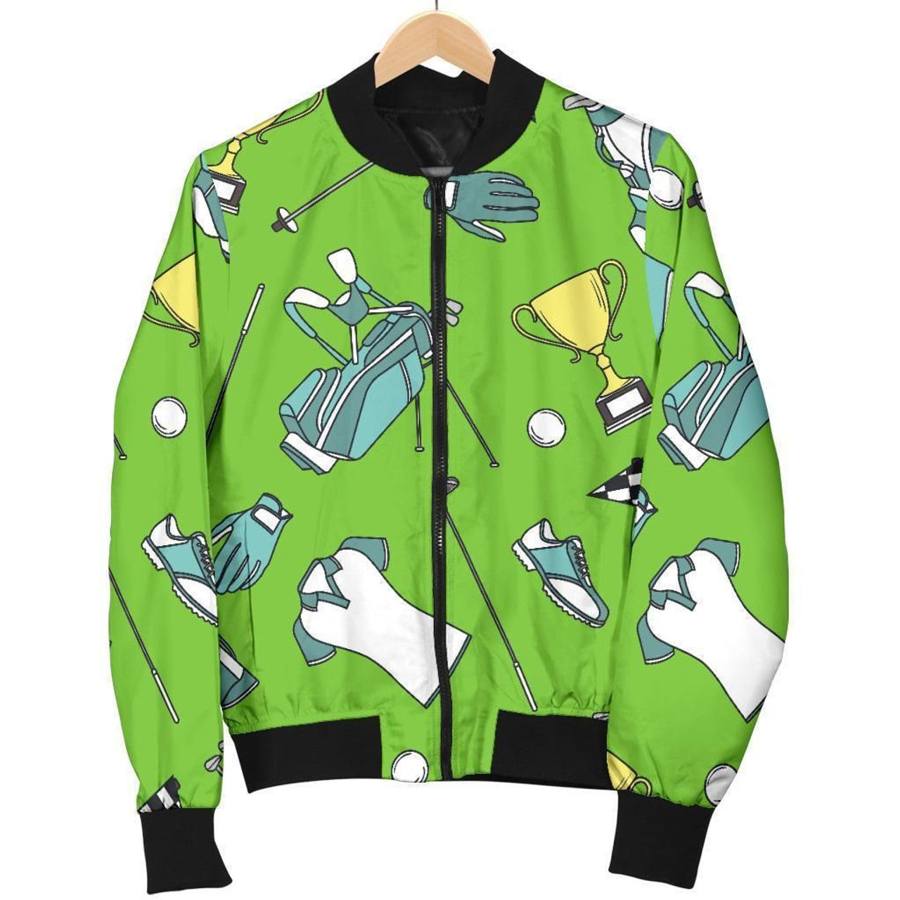 FUNSTUFFPRINT Golf Green Print Pattern Women Casual 3D Bomber Jacket