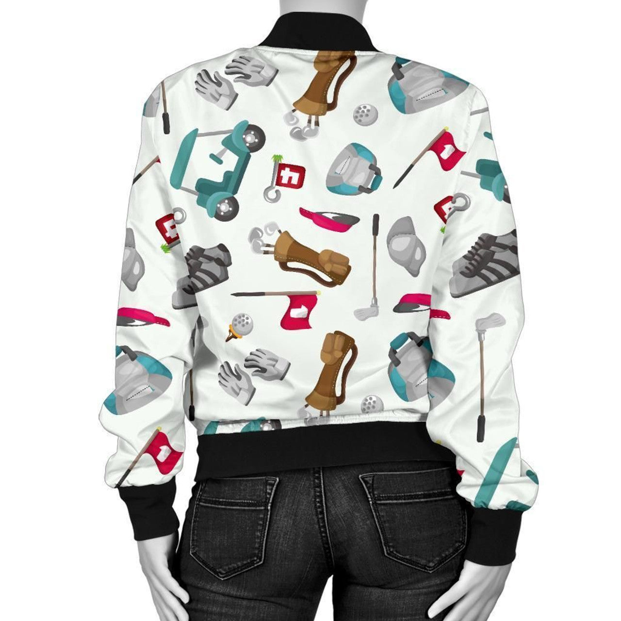 FUNSTUFFPRINT Golf Print Pattern Women Casual 3D Bomber Jacket
