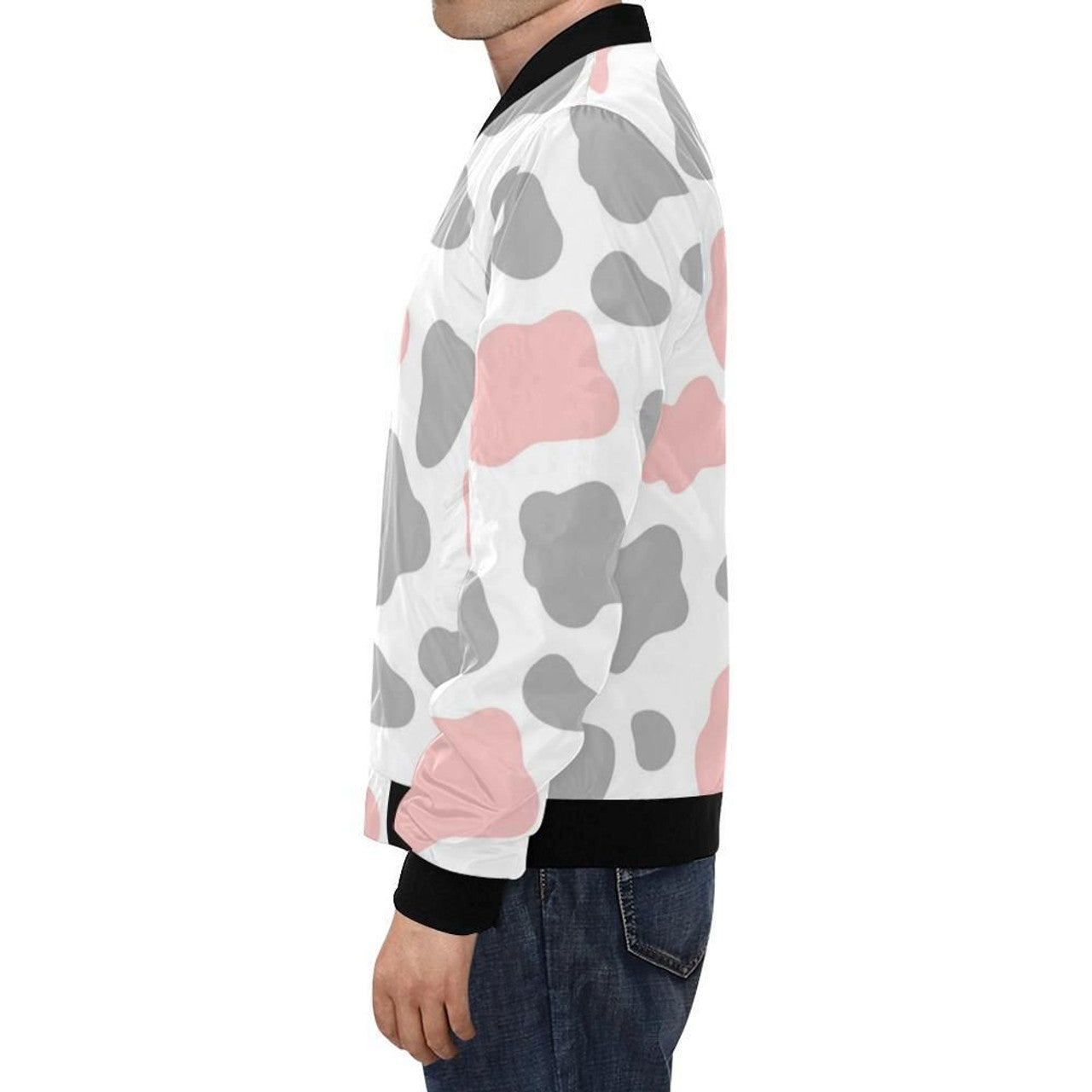 FUNSTUFFPRINT Pink Gray Cow Pattern Print Mens 3D Bomber Jacket