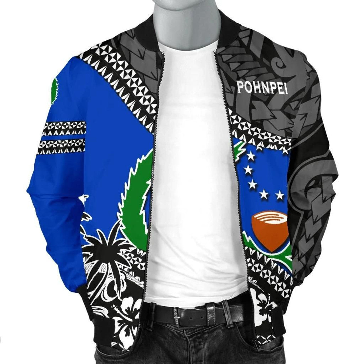 FUNSTUFFPRINT Pohnpei Men's Bomber Jacket Fall In Wave 3D Bomber Jacket