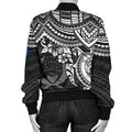 FUNSTUFFPRINT Pohnpei Polynesian Bomber Jacket (Women) - Polynesian White Turtle - 3D Bomber Jacket