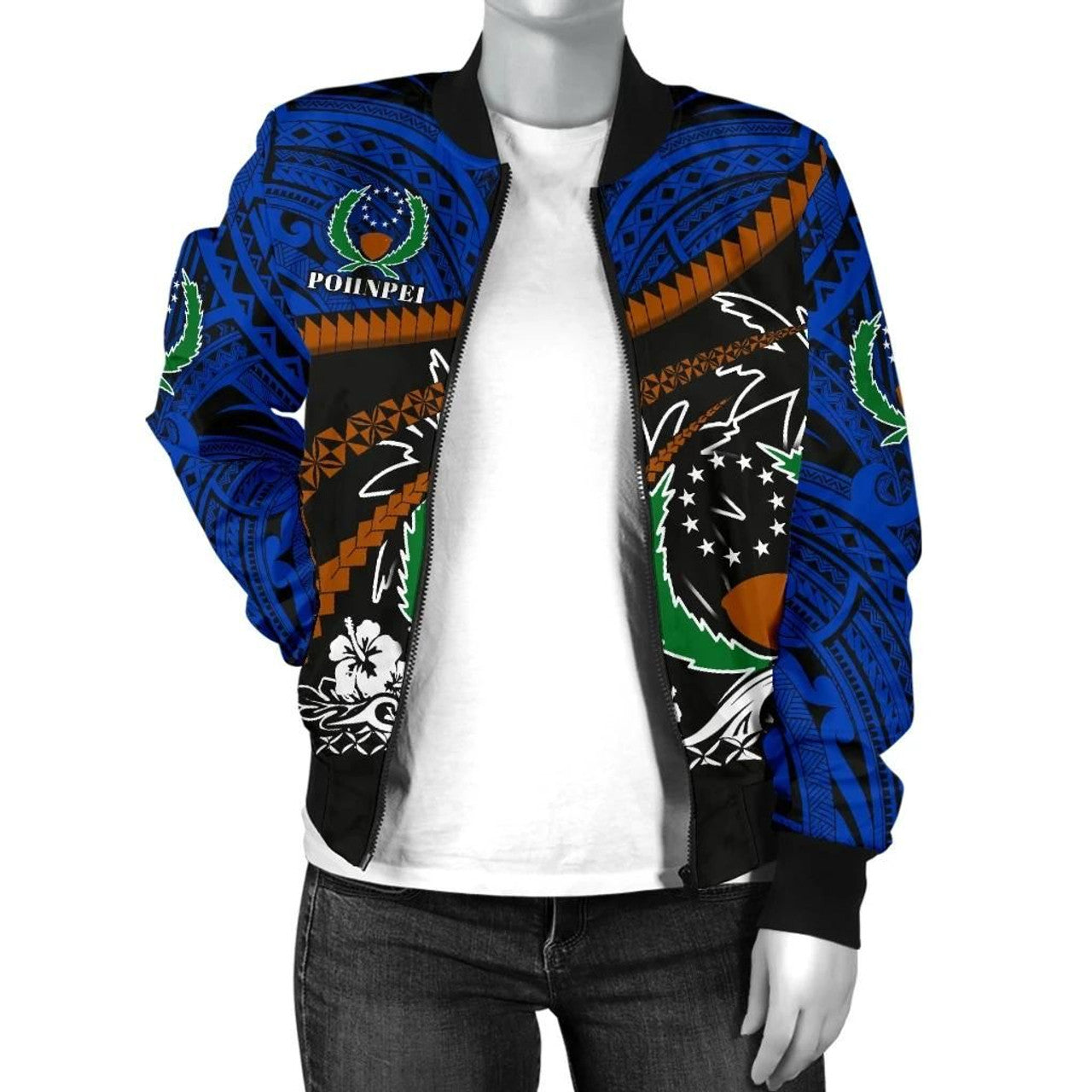 FUNSTUFFPRINT Pohnpei Women Bomber Jacket - Road to Hometown 3D Bomber Jacket