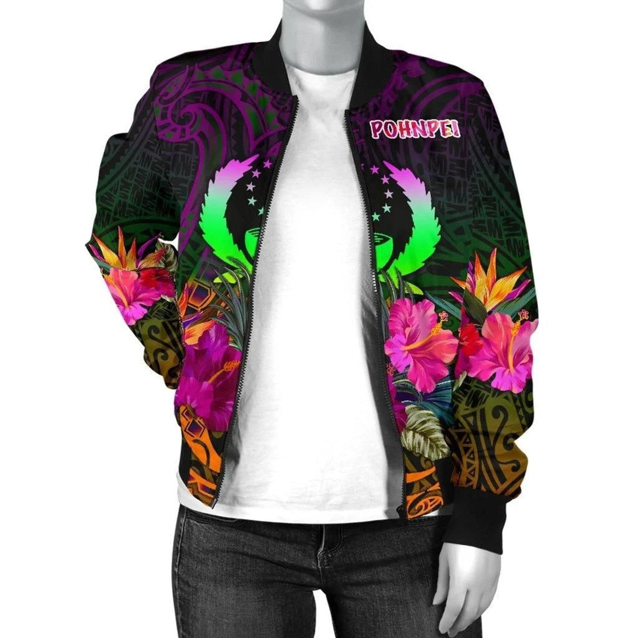 FUNSTUFFPRINT Pohnpei Women's Bomber Jacket - Summer Hibiscus - 3D Bomber Jacket