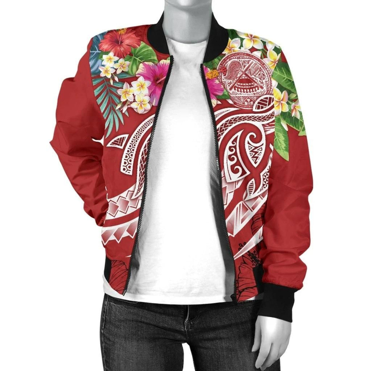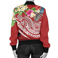 FUNSTUFFPRINT Polynesian American Samoa Women's Bomber Jacket - Summer Plumeria (Red) - 3D Bomber Jacket