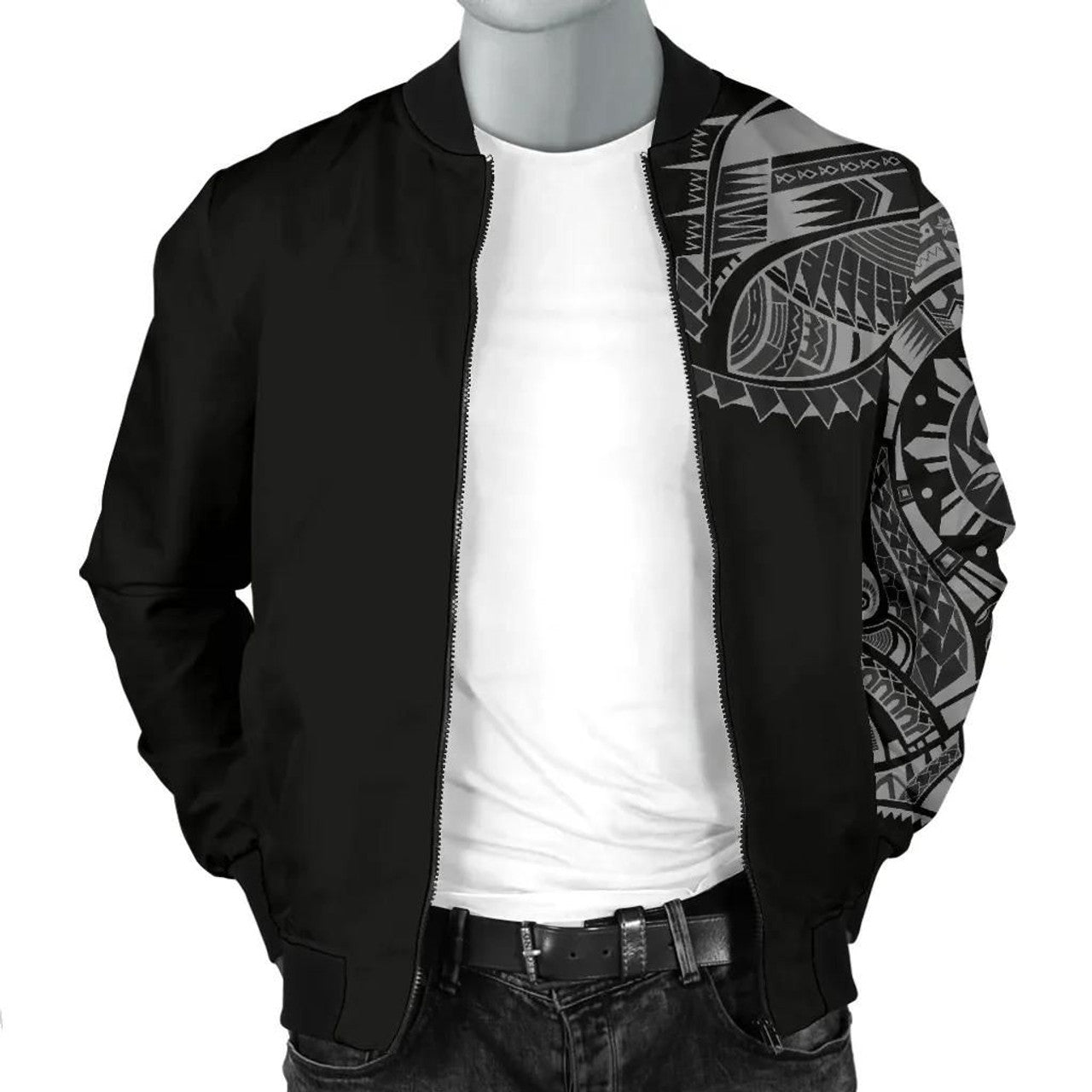 FUNSTUFFPRINT Polynesian Chest Tattoo Men's Bomber Jacket Gray 3D Bomber Jacket