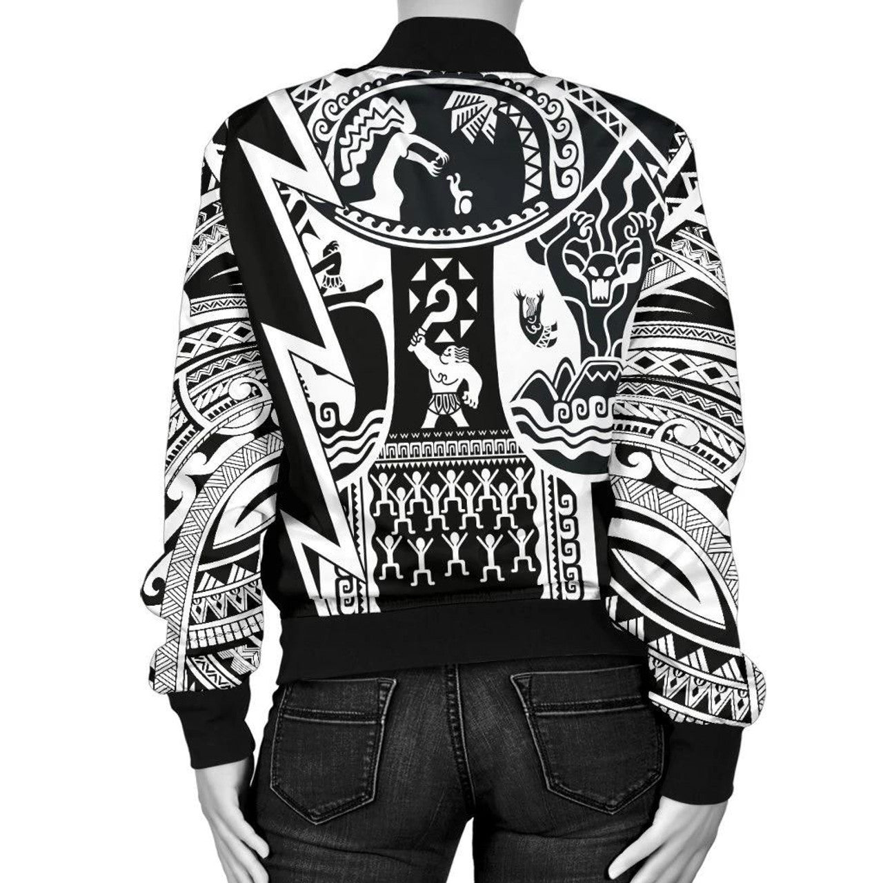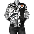 FUNSTUFFPRINT Polynesian Guinea Women's Bomber Jacket - Moana Maui Tattoo With Coat Of Arm Guinea White - 3D Bomber Jacket