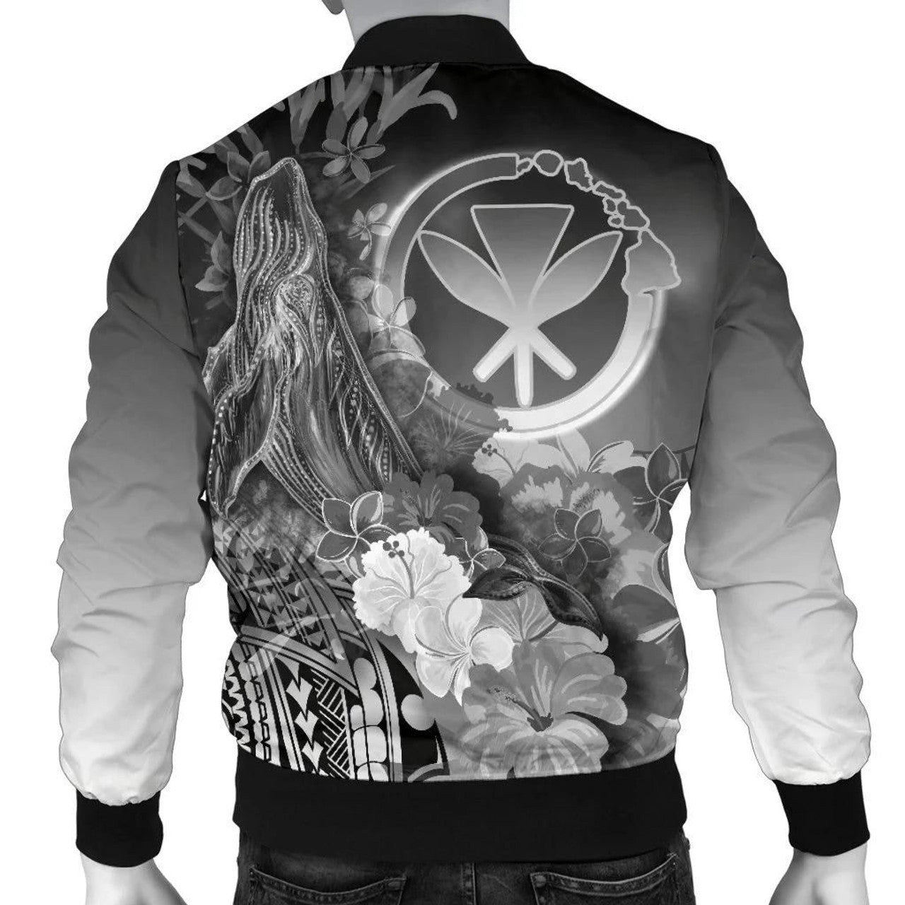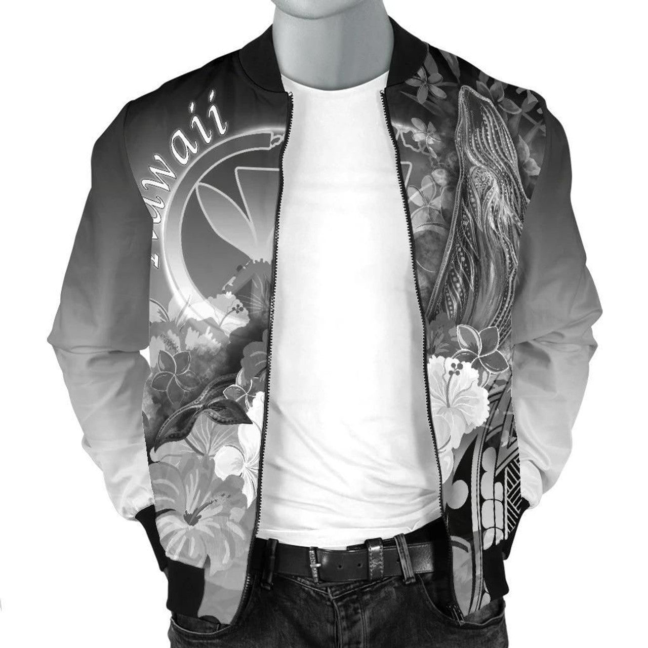 FUNSTUFFPRINT Polynesian Hawaii Men's Bomber Jacket - Kanaka Maoli Humpback Whale with Tropical Flowers (White)- 3D Bomber Jacket