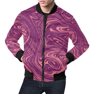 FUNSTUFFPRINT Red Marble Pattern Print Mens 3D Bomber Jacket