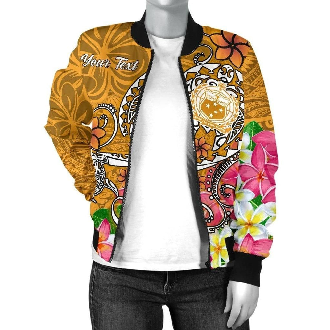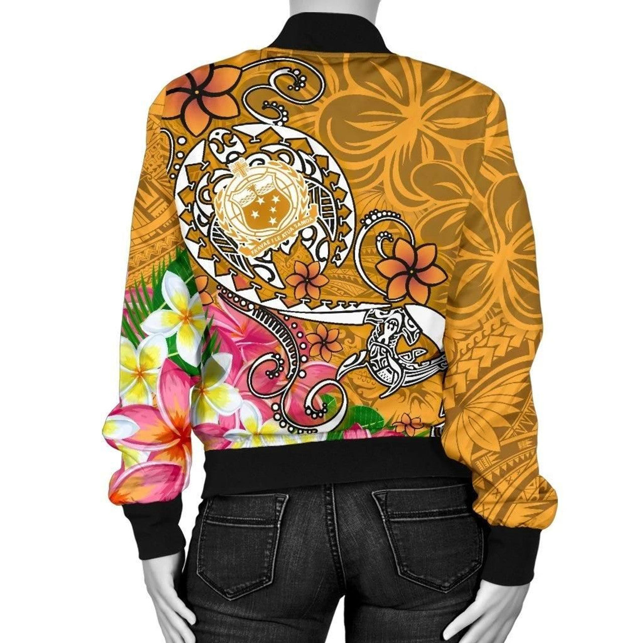 FUNSTUFFPRINT Samoa Custom Personalised Women's Bomber Jacket - Turtle Plumeria (Gold) - 3D Bomber Jacket