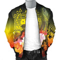 FUNSTUFFPRINT Samoa Men's Bomber Jacket- Humpback Whale with Tropical Flowers (Yellow)- 3D Bomber Jacket