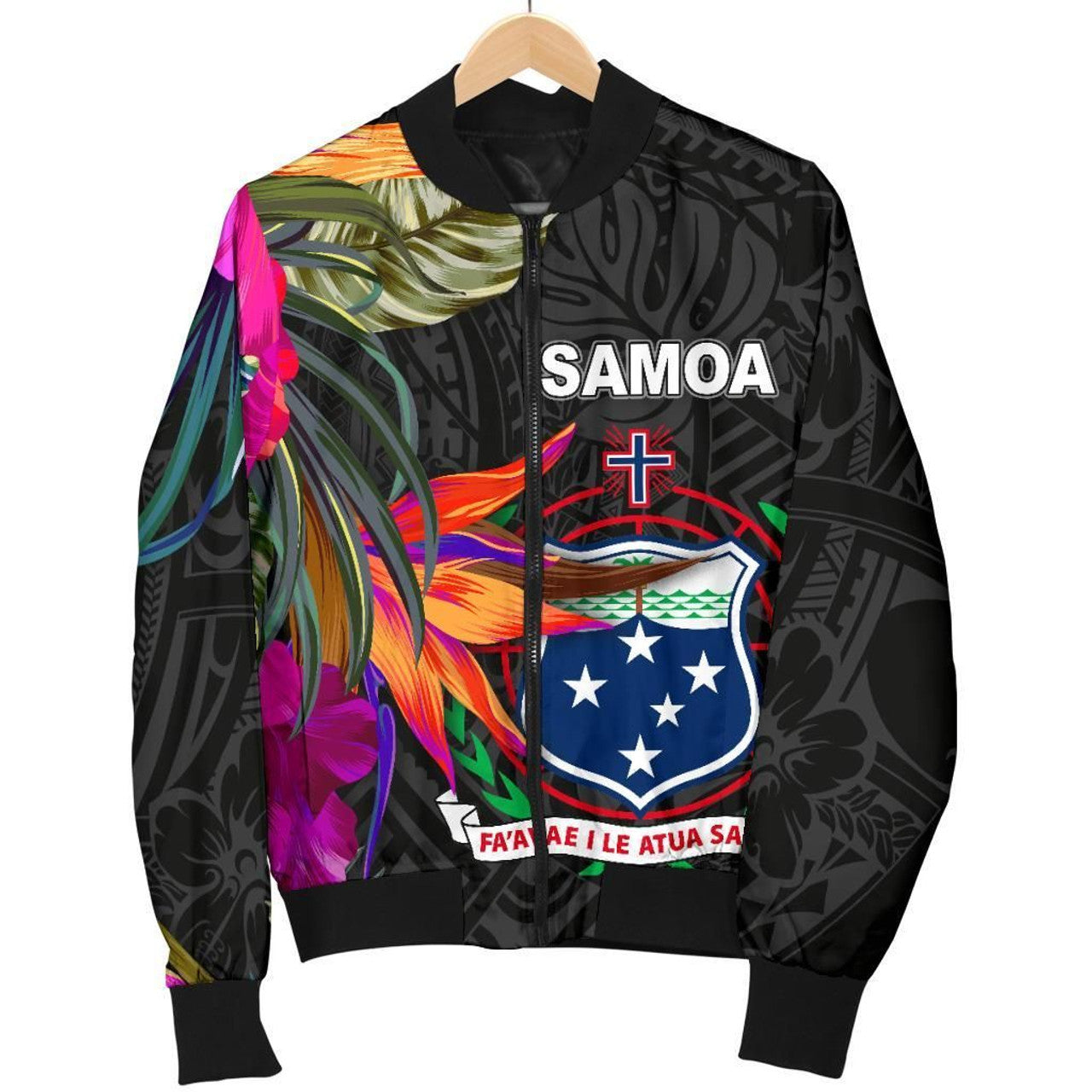 FUNSTUFFPRINT Samoa Men's Bomber Jacket - Polynesian Hibiscus Pattern - 3D Bomber Jacket