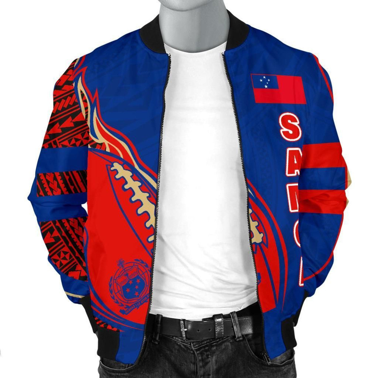 FUNSTUFFPRINT Samoa Men's Bomber Jacket - Rugby Ball Fire - 3D Bomber Jacket