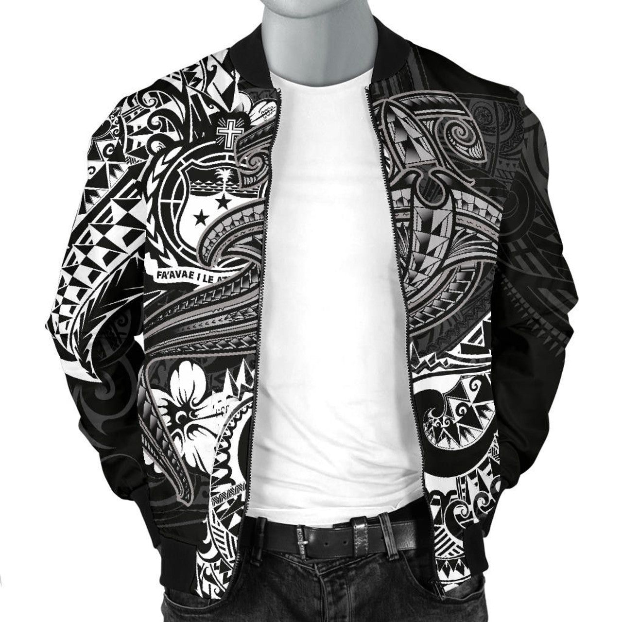 FUNSTUFFPRINT Samoa Men's Bomber Jacket - White Shark Polynesian Tattoo - 3D Bomber Jacket