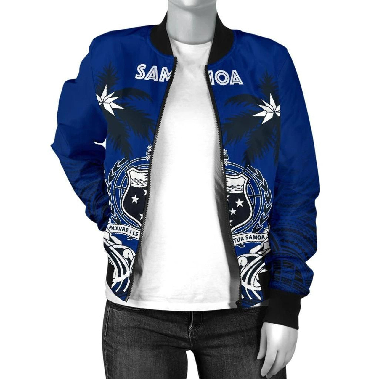 FUNSTUFFPRINT Samoa Polynesian Coconut Women's Bomber Jacket (Blue) 3D Bomber Jacket
